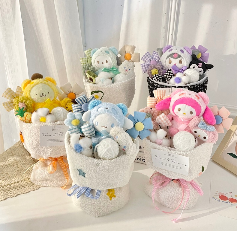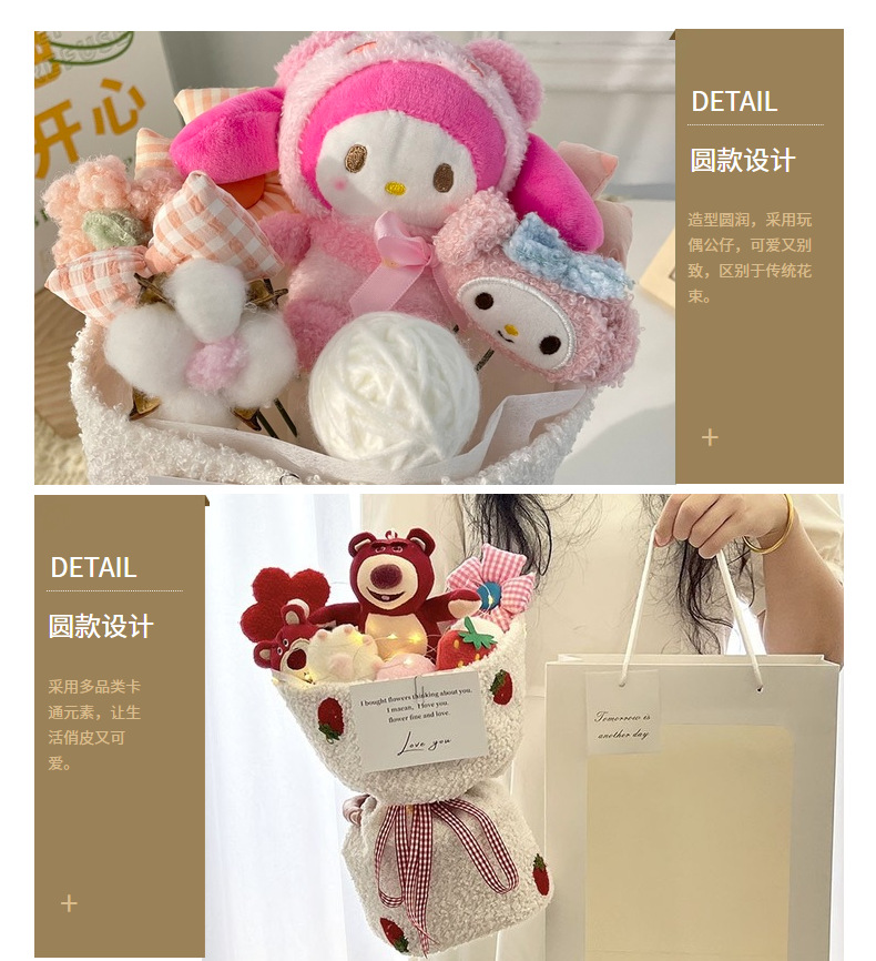Día de San Valentín de Tanabata Regalo de mano Oso de fresa Coulomi Muñeca Ramo de muñeca Regalo de cumpleaños para novia infantil