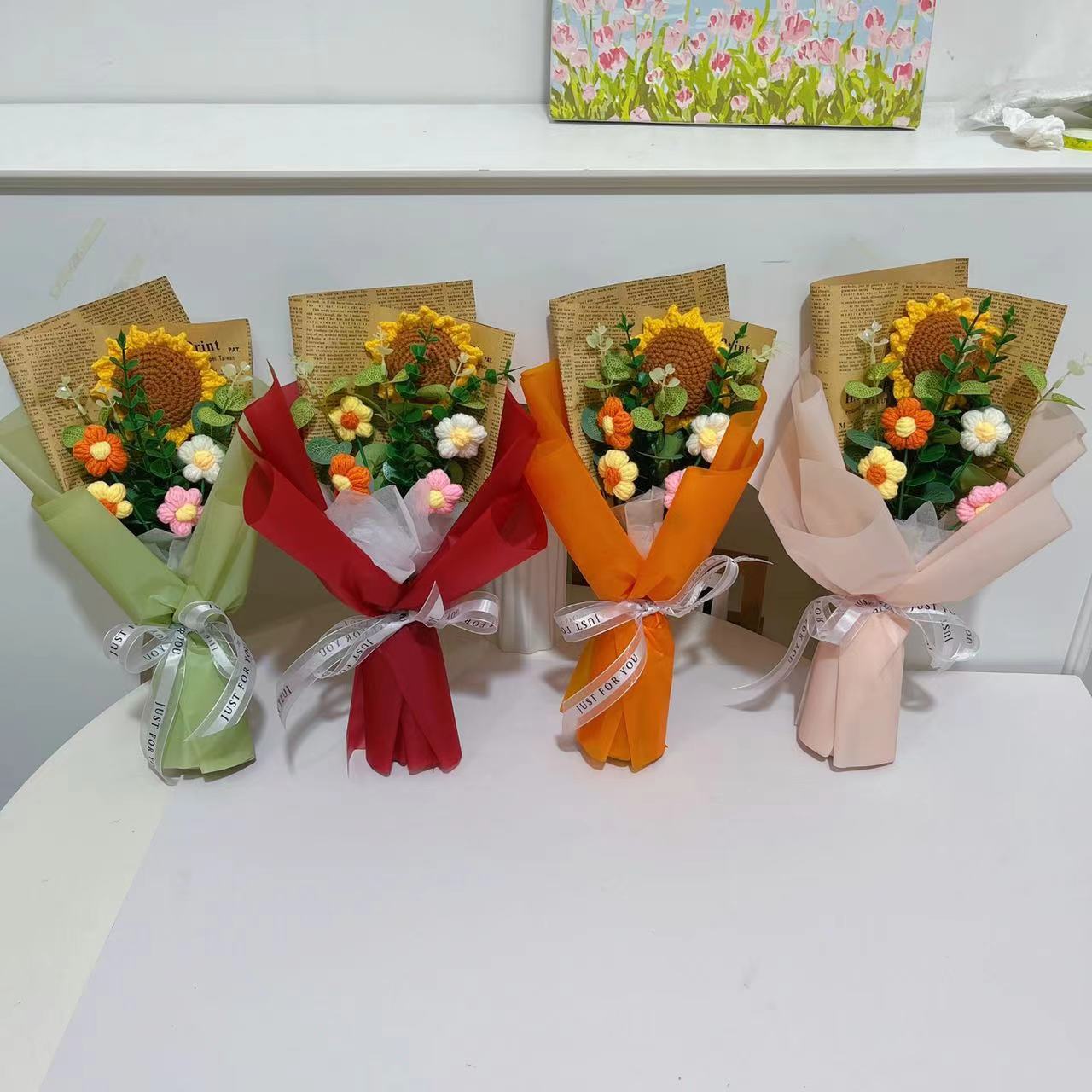 De lana de ganchillo pequeño ramo de regalo girasol acabado flor regalo de negocios lana hecha a mano de bricolaje de ganchillo flor artificial