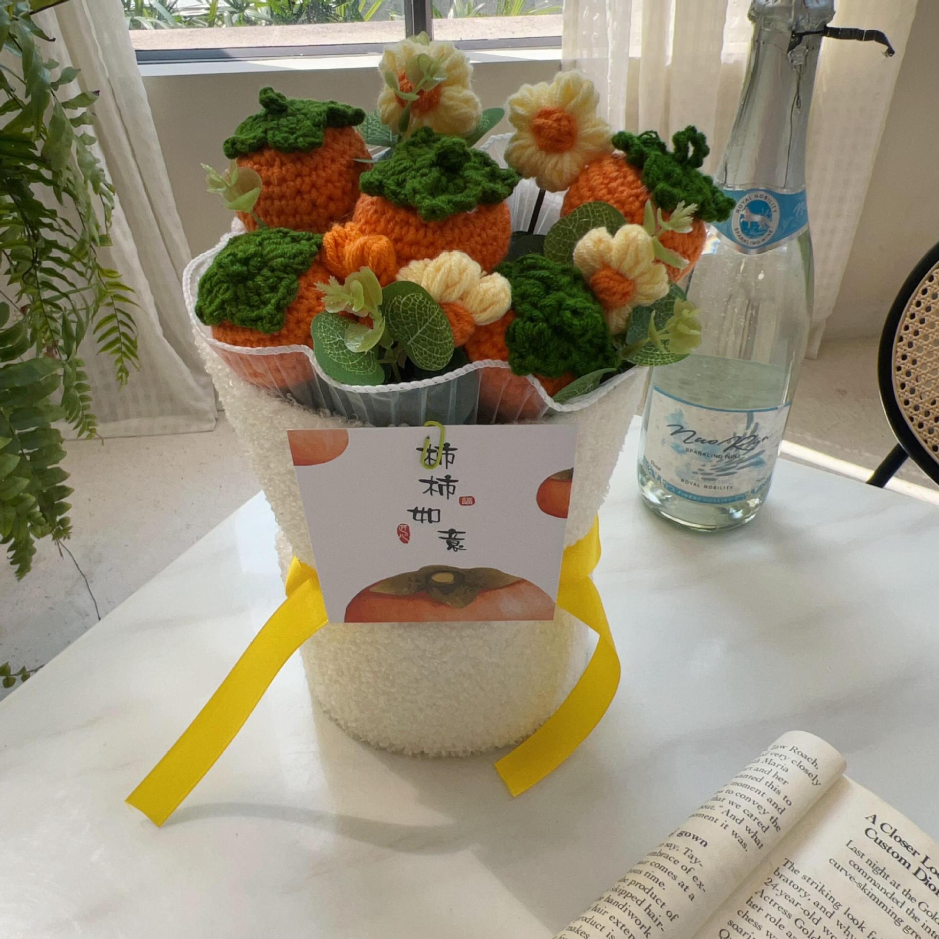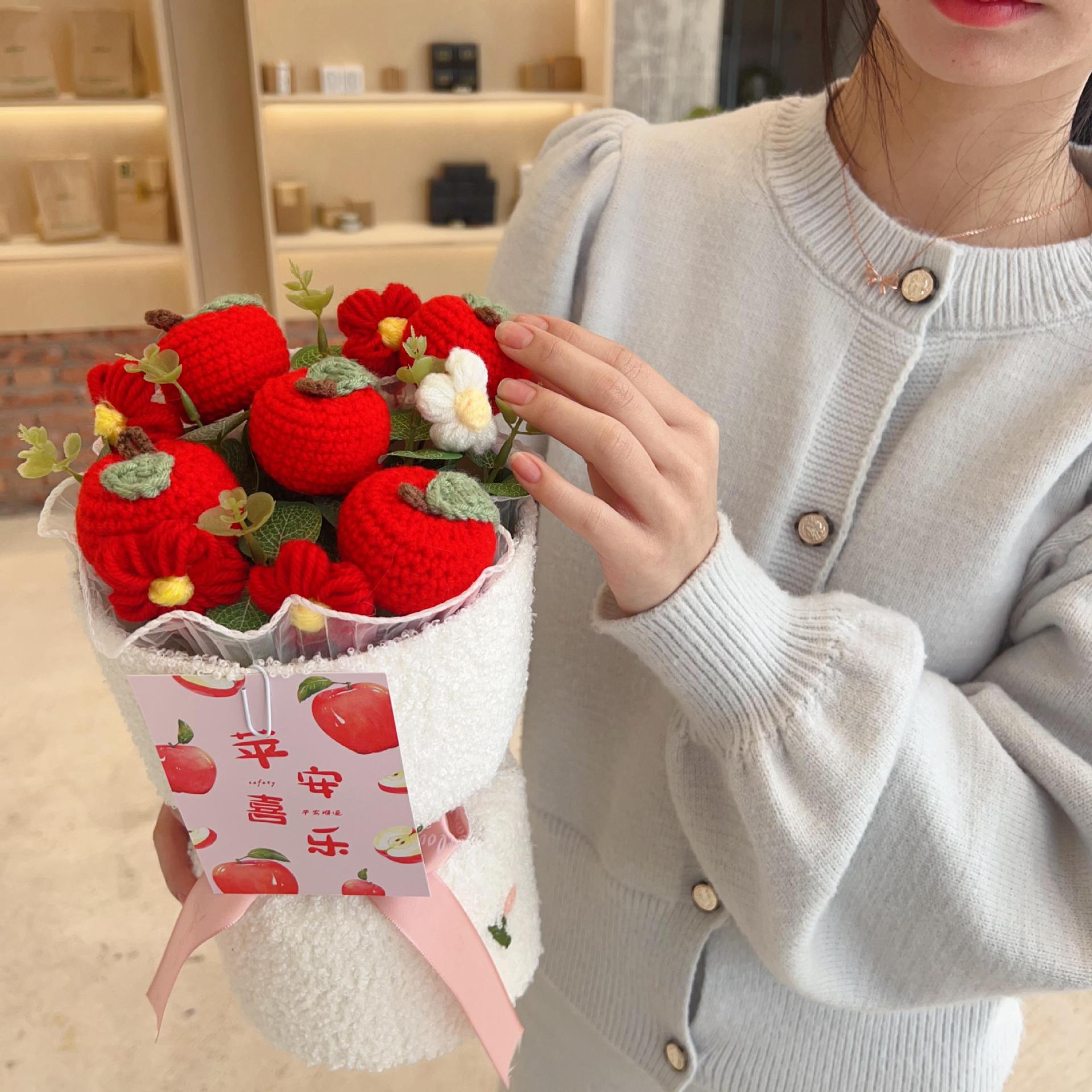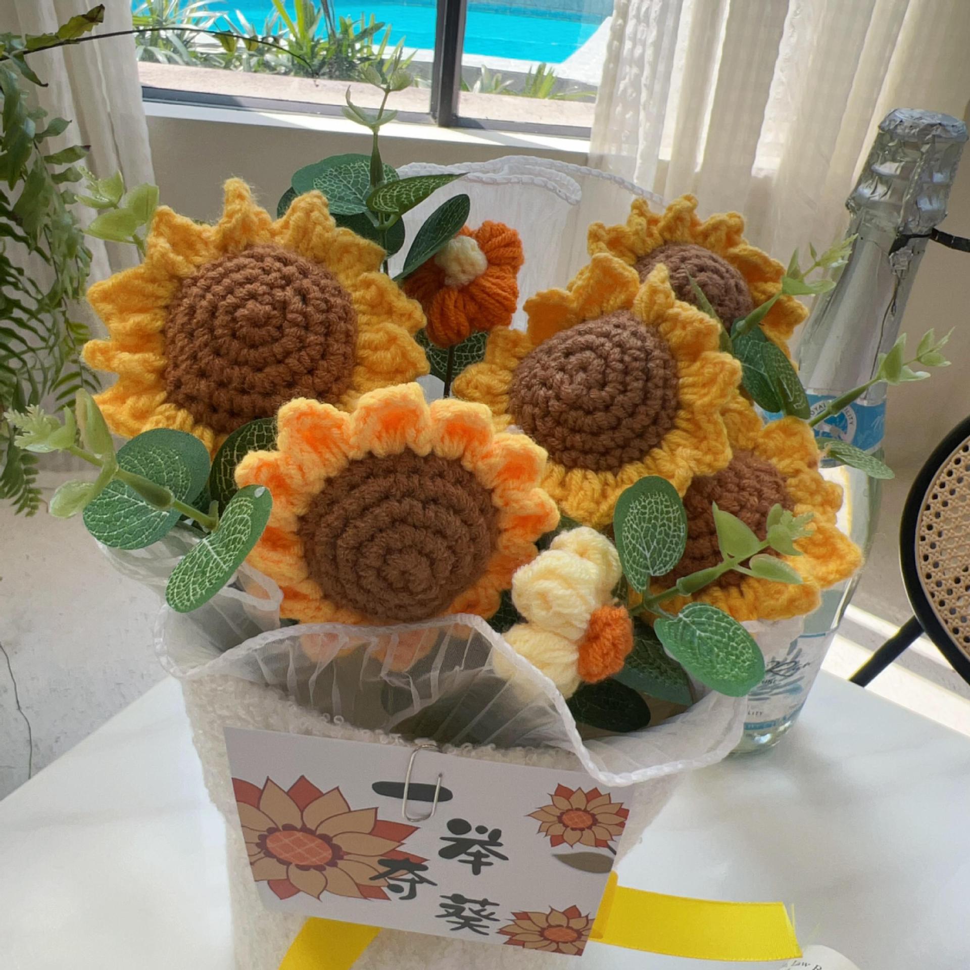 Regalo del día de la madre Ramo de fruta de fresa de lana tejida a mano Regalo de cumpleaños para niñas Flor de graduación de girasol