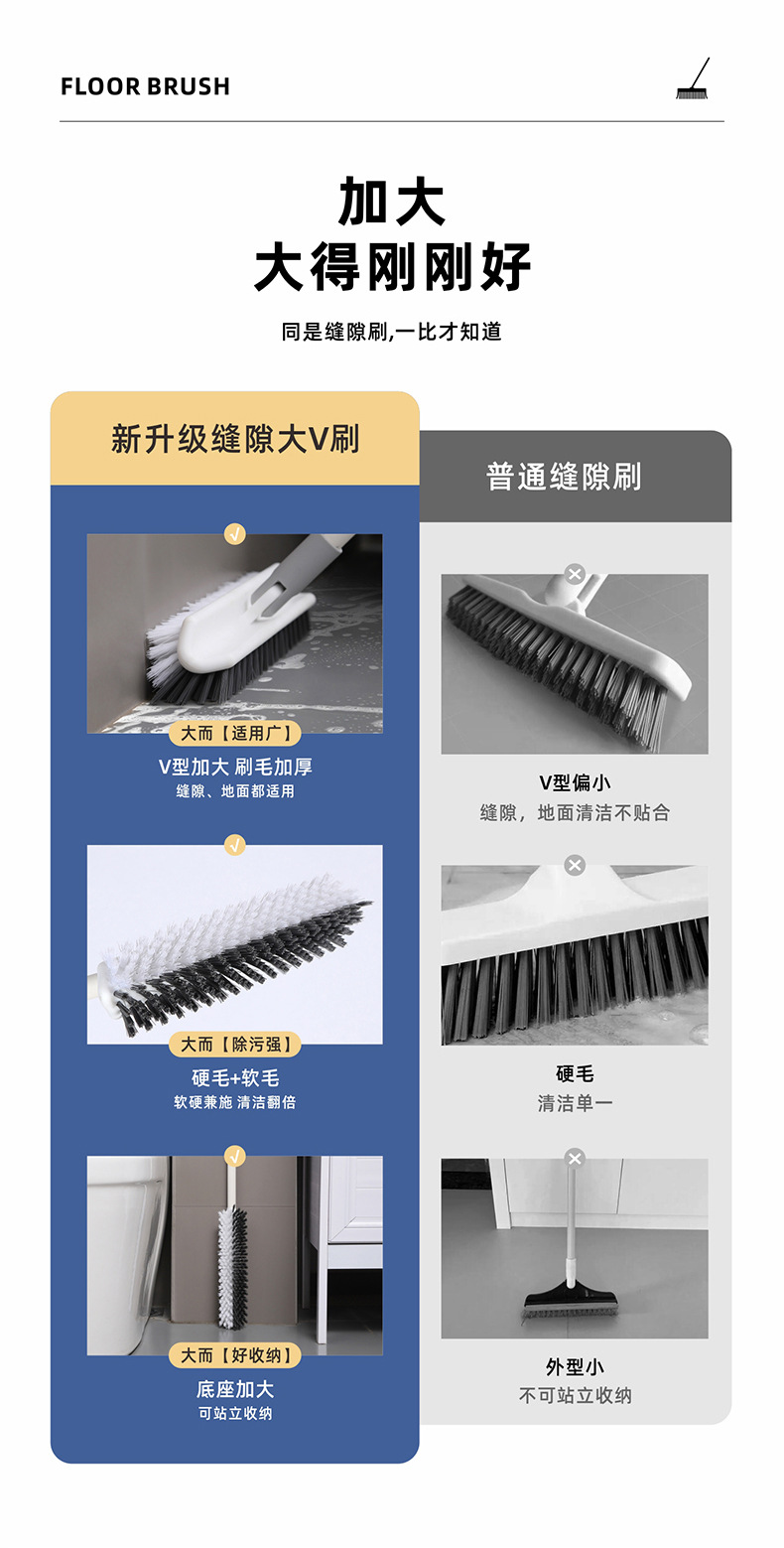 Gap cepillo de piso de esquina de pared cepillo de baño doméstico retráctil mango largo cepillo de limpieza de cerdas sin ángulo muerto cepillo de ranura de azulejo