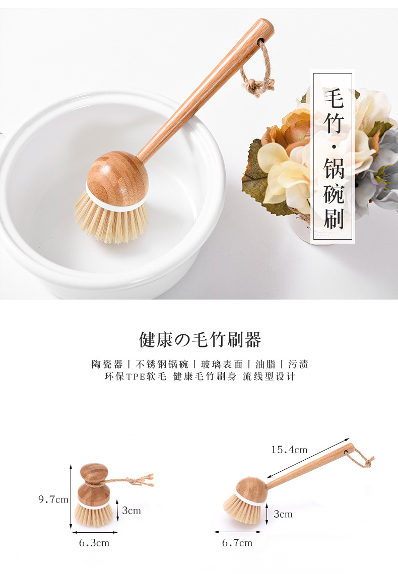 Cocina bambú lavado olla cepillo fregadero del hogar estufa mango largo cepillo de limpieza antiadherente aceite suave plato de pelo cepillo antiadherente pan