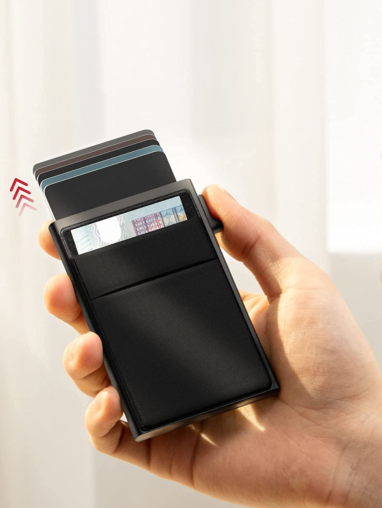 Empuje lateral caja de tarjeta de metal RFID antirrobo cepillo aleación de aluminio titular de la tarjeta de Banco titular de la tarjeta cubierta protectora caja de tarjeta de visita ultrafina