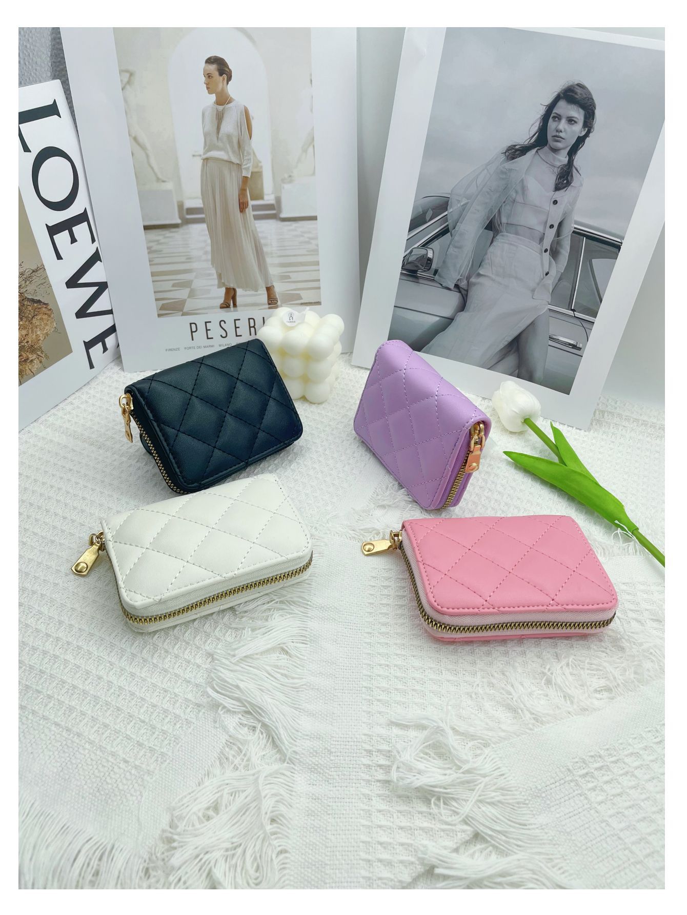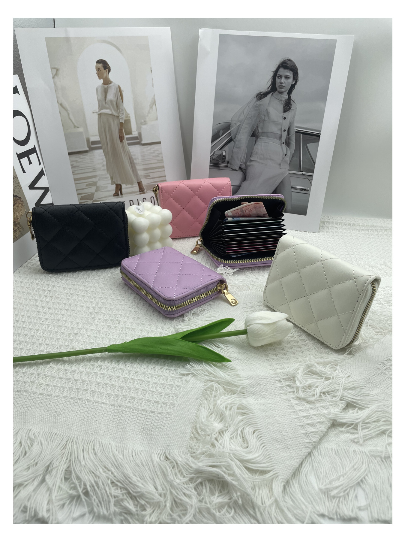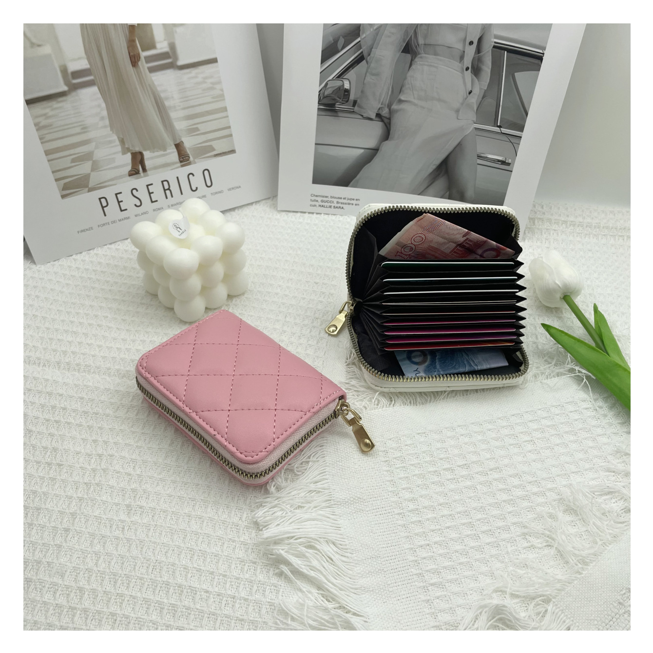 Tarjetero pequeño bordado con diseño rombo, funda protectora de tarjetas para mujer, monedero compacto con 9 ranuras, estilo 2022