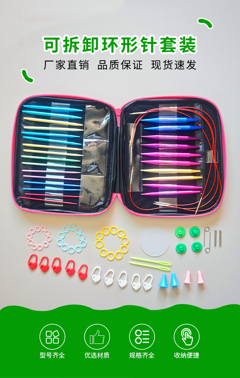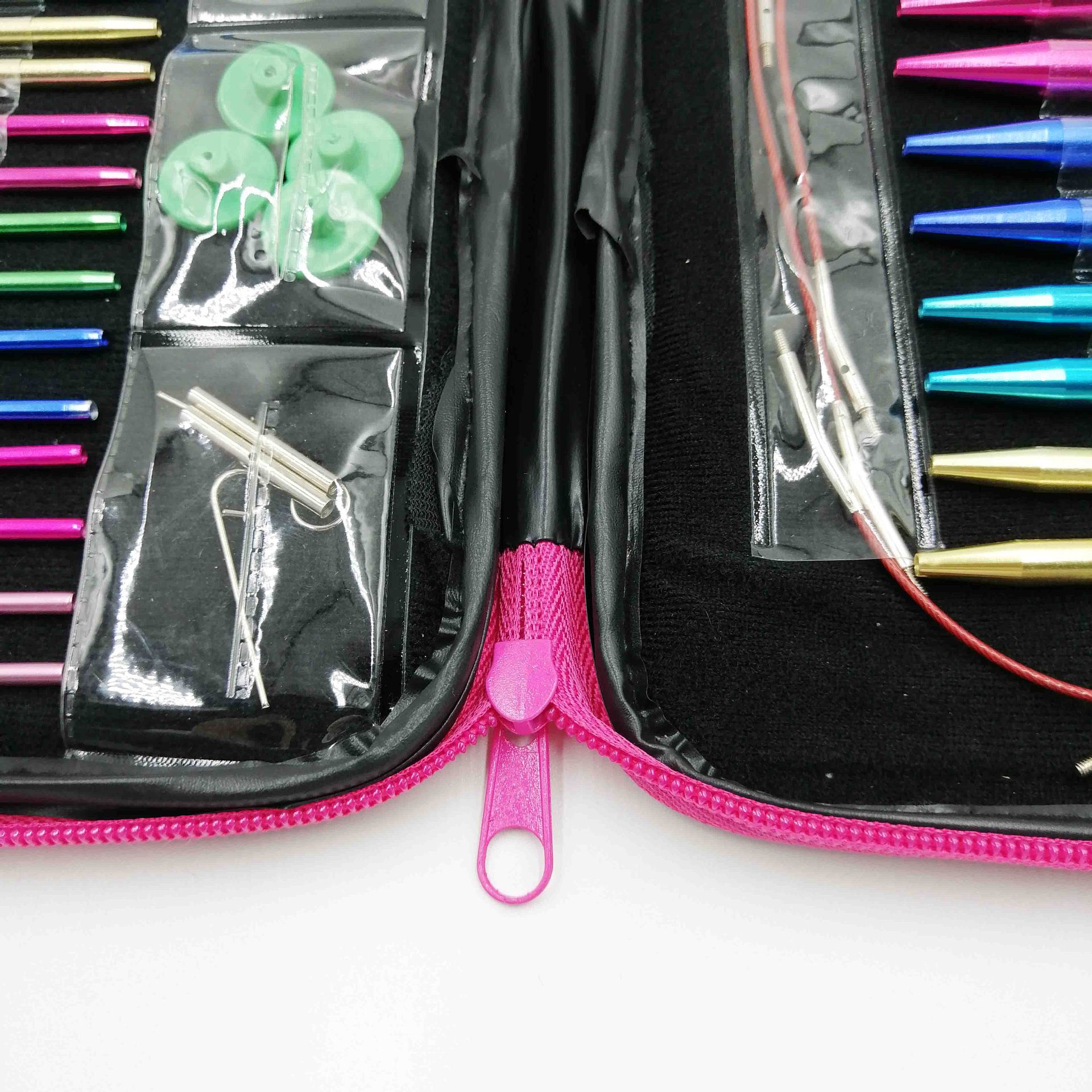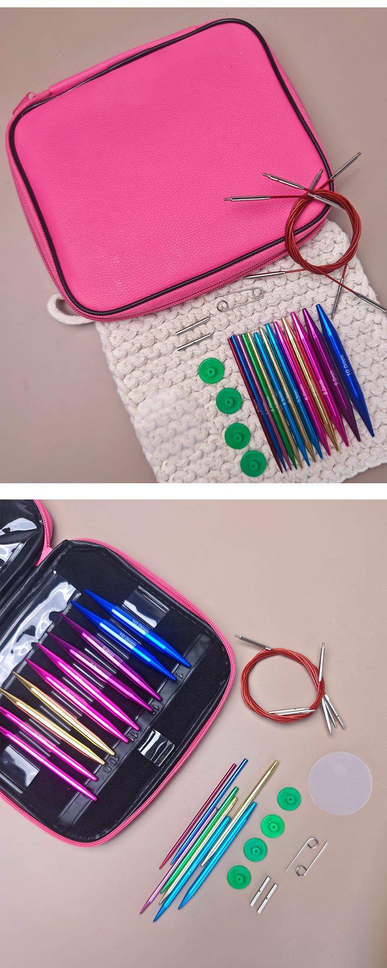 Rojo bordado desmontable anillo aguja color alúmina intercambio cable suéter aguja de tejer bolsa de ganchillo conjunto de herramientas