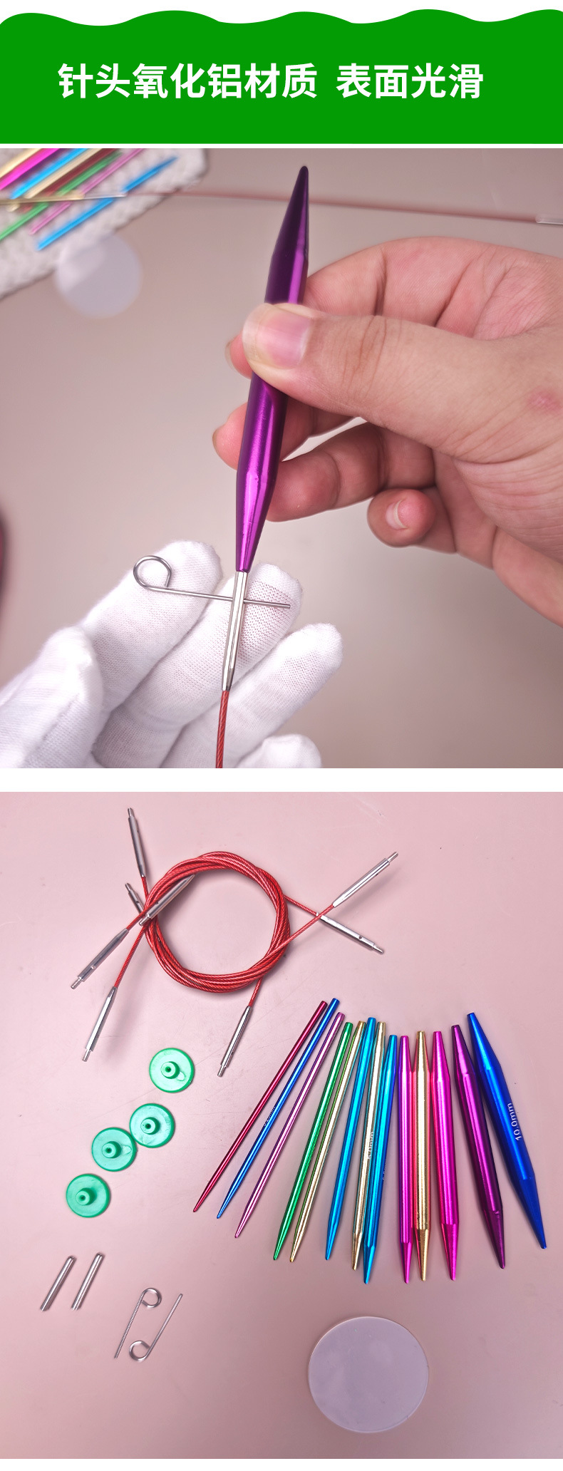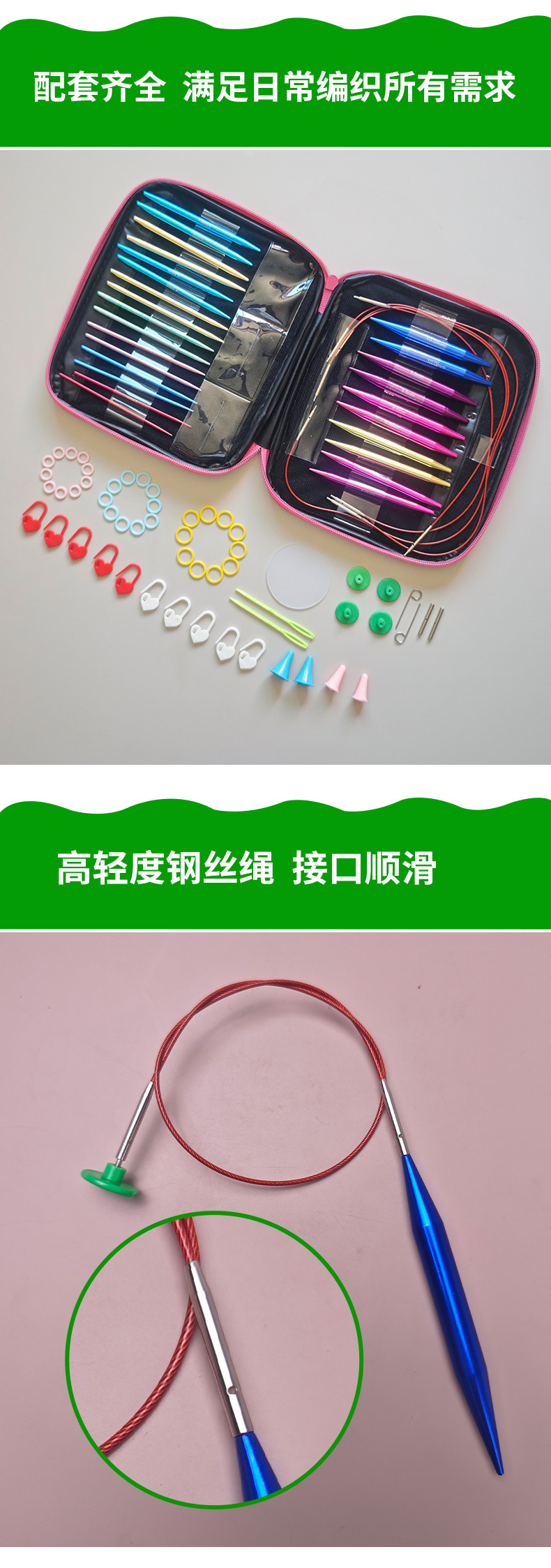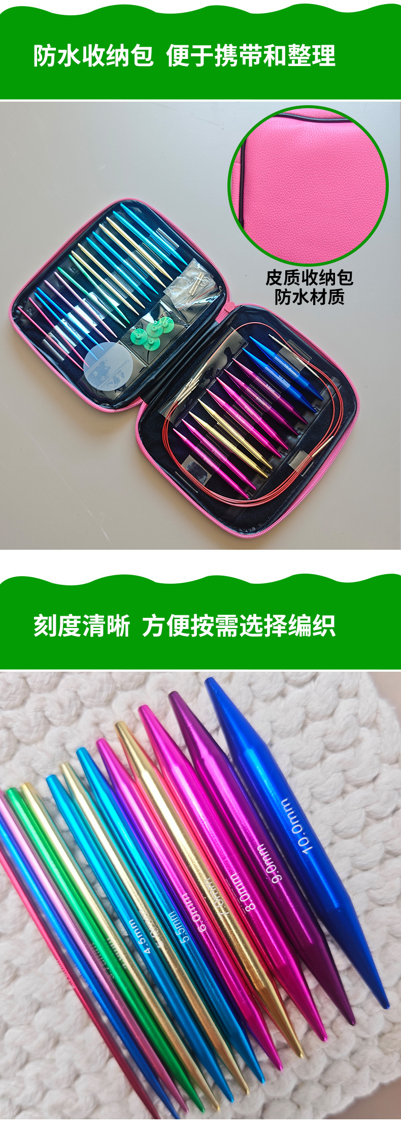 Rojo bordado desmontable anillo aguja color alúmina intercambio cable suéter aguja de tejer bolsa de ganchillo conjunto de herramientas