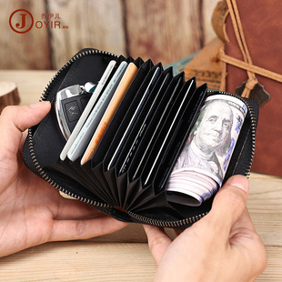 Crazy Horse de cuero RFID anti-magnético titular de la tarjeta de gran capacidad titular de la tarjeta de órgano bolsa titular de la tarjeta multi-tarjeta de cuero retro monedero