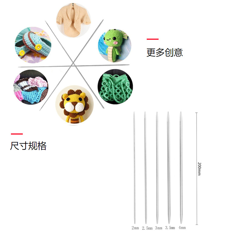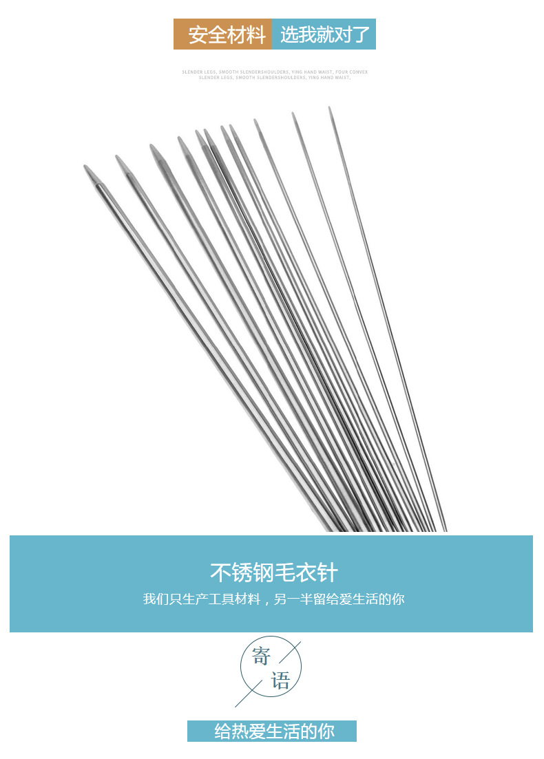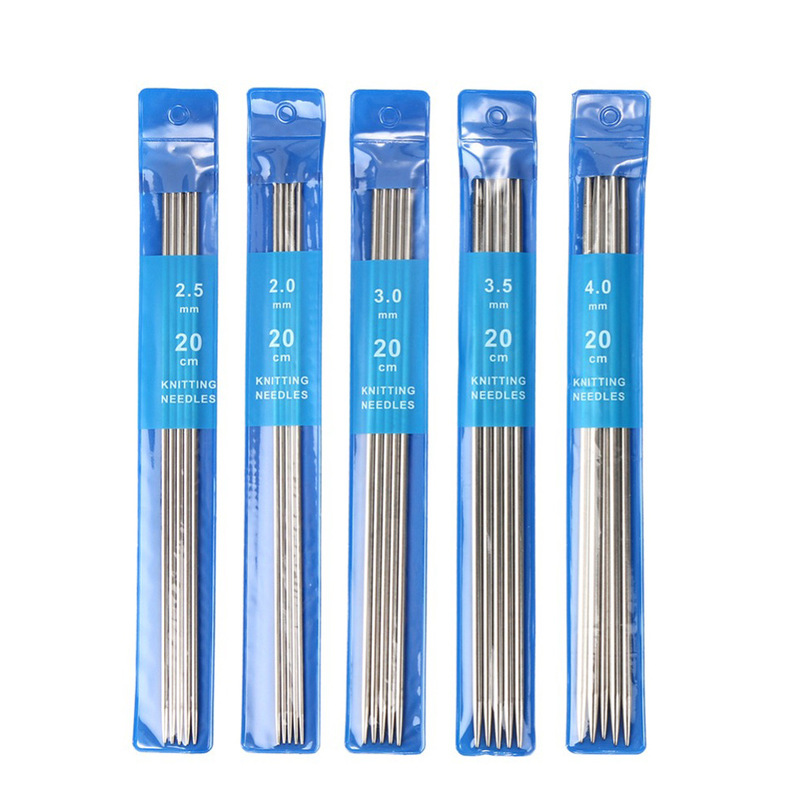 Aguja de suéter de acero inoxidable aguja de suéter de 20cm aguja de tejer de doble punta aguja recta traje de tejer herramientas en stock al por mayor
