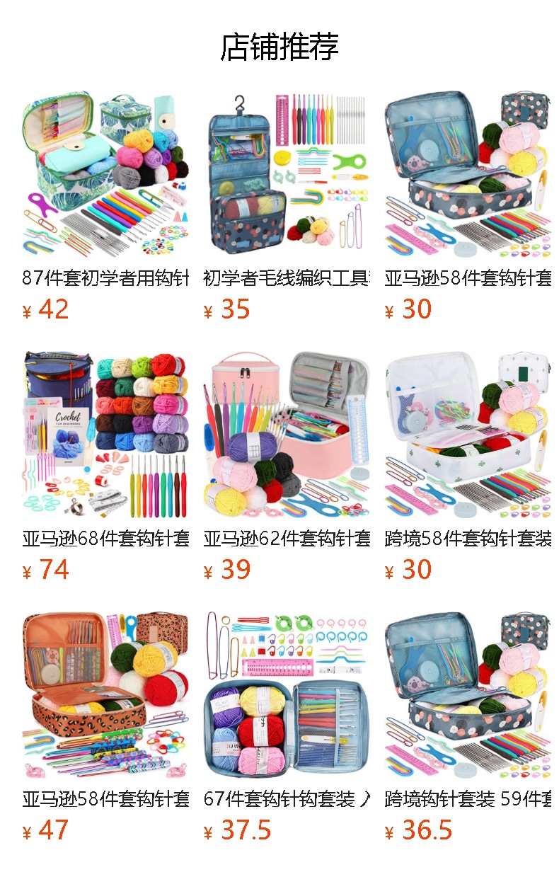 Cross-border 2023new principiante crochet traje multi-color serie bolsa de almacenamiento con 5 accesorios de lana al por mayor