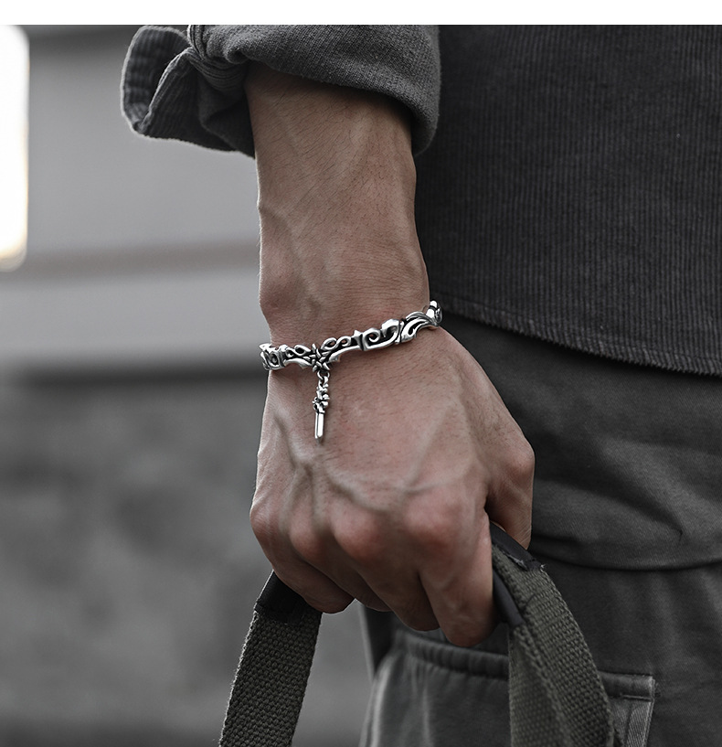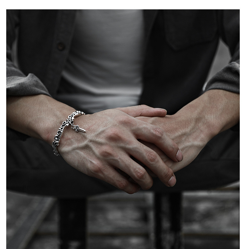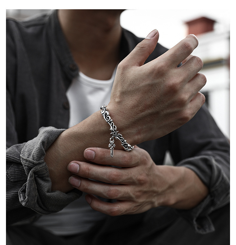 Estilo coreano S925 pulsera de vid de plata vintage industria pesada estrella de cinco puntas Cruz patrón oscuro pulsera creativa moda