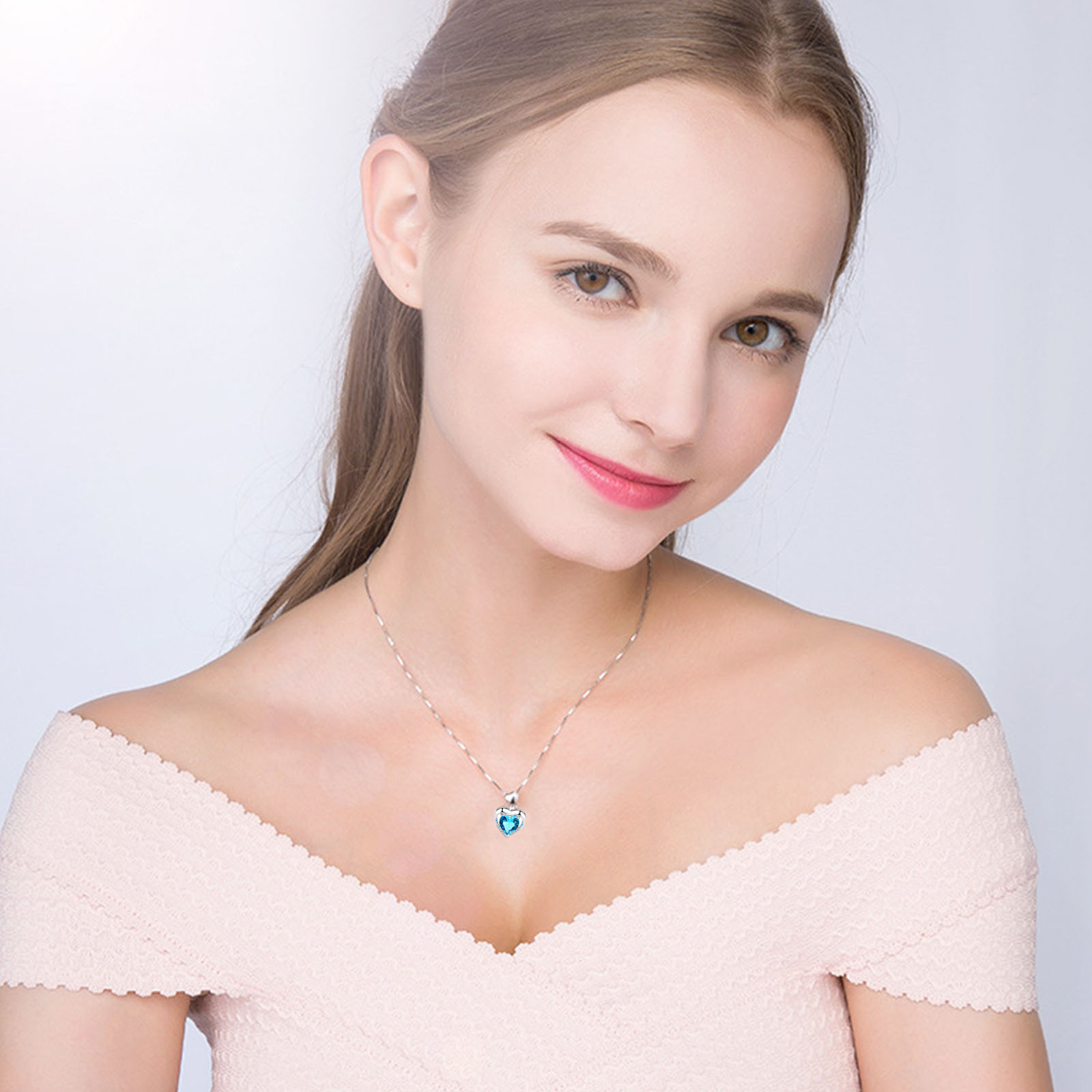 Nuevo colgante de diamante de cristal azul púrpura en forma de corazón elegante Rose cabeza collar joyero regalo de San Valentín