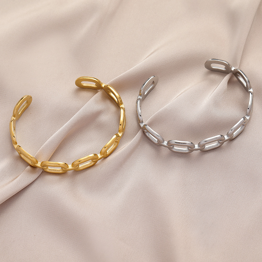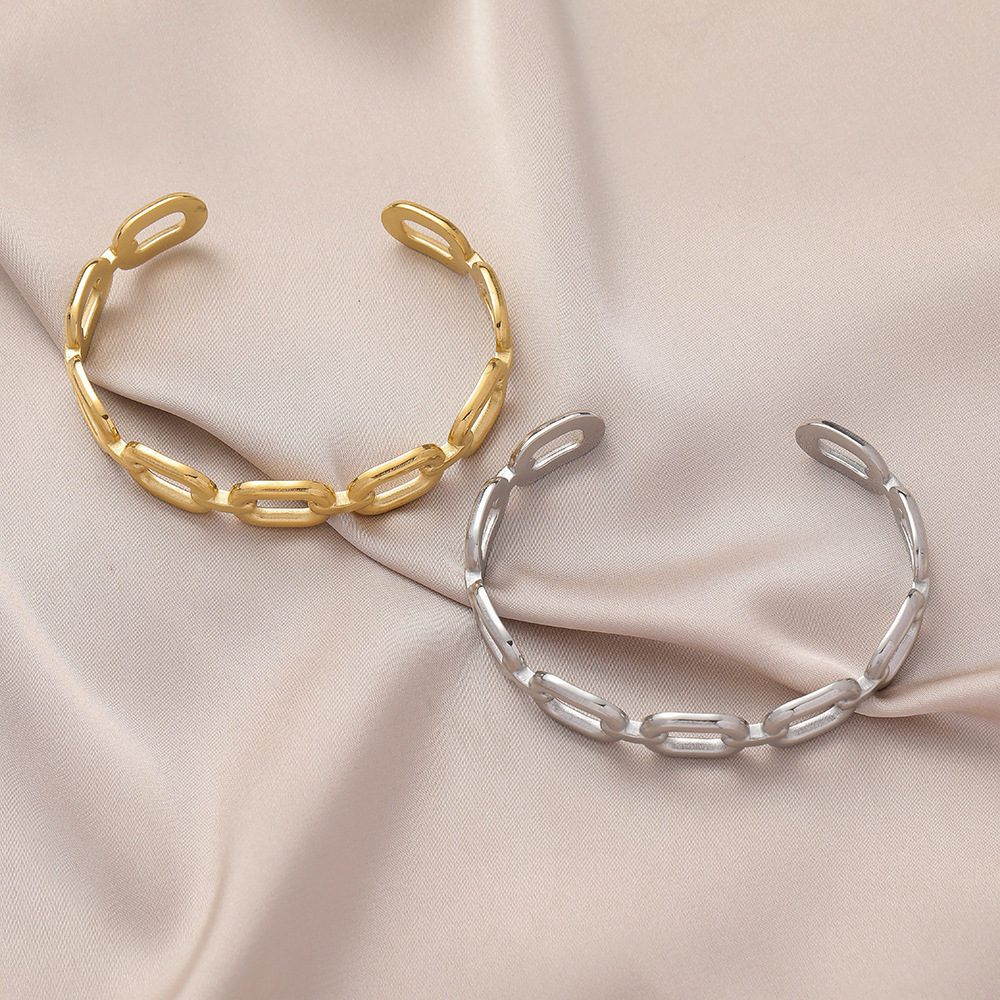INS estilo transfronterizo moda personalizada titanio acero cuadrado anillo hebilla abierta pulsera de acero inoxidable moda simple pulsera en forma de C