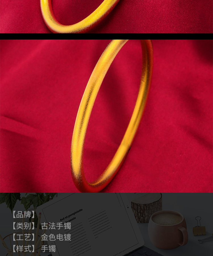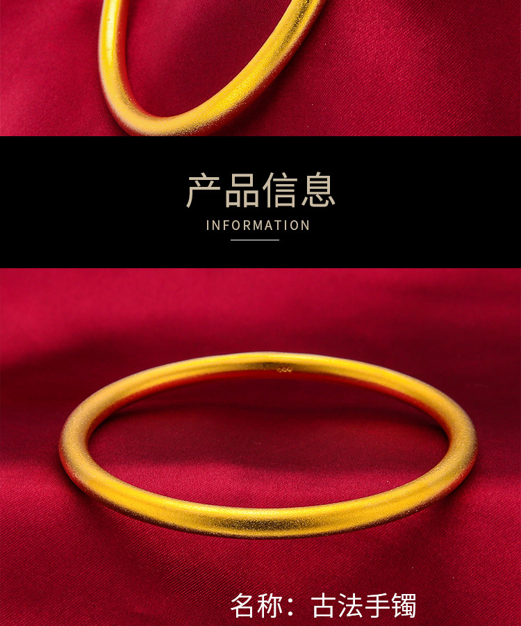 Tienda de oro mismo estilo antiguo patrimonio pulsera mujer imitación oro esmerilado liso anillo pulsera arena sólida pulsera de oro suministro al por mayor