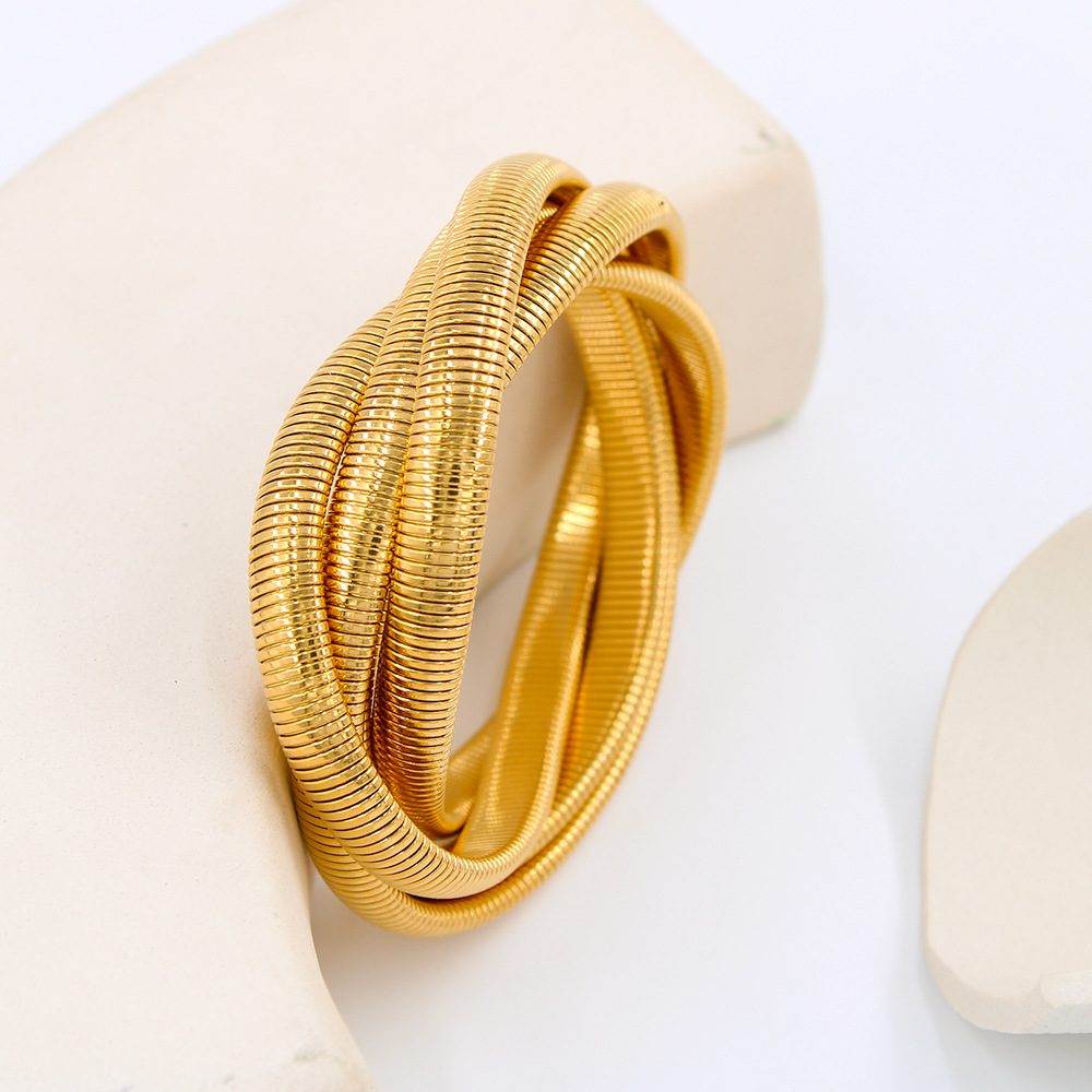 De alta calidad punk estilo apilado de múltiples capas pulsera chapado en oro de acero inoxidable elástico nueva moda pulsera joyería femenina