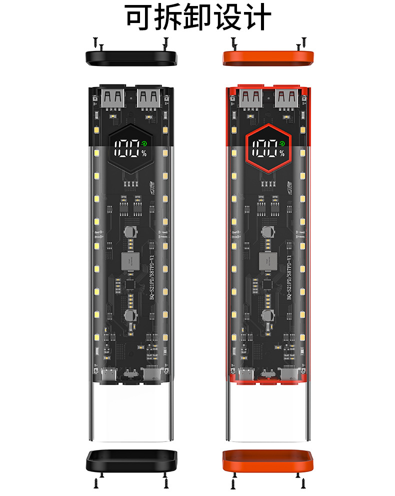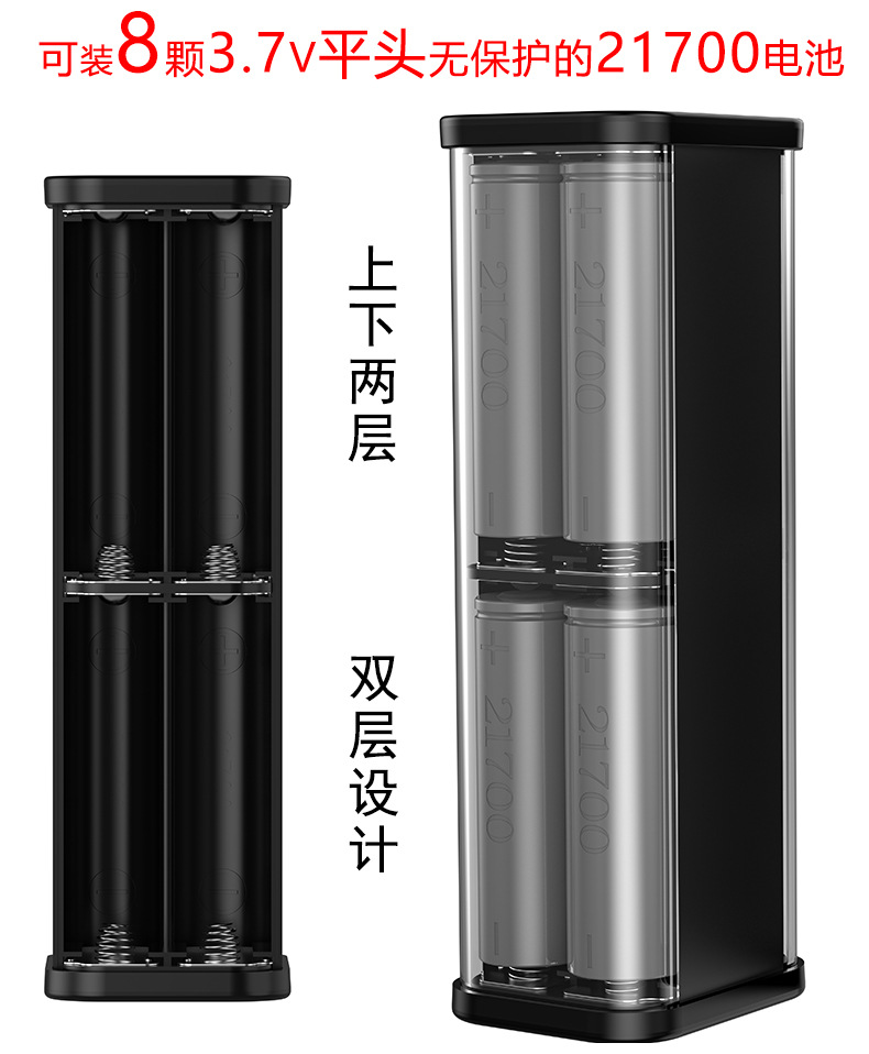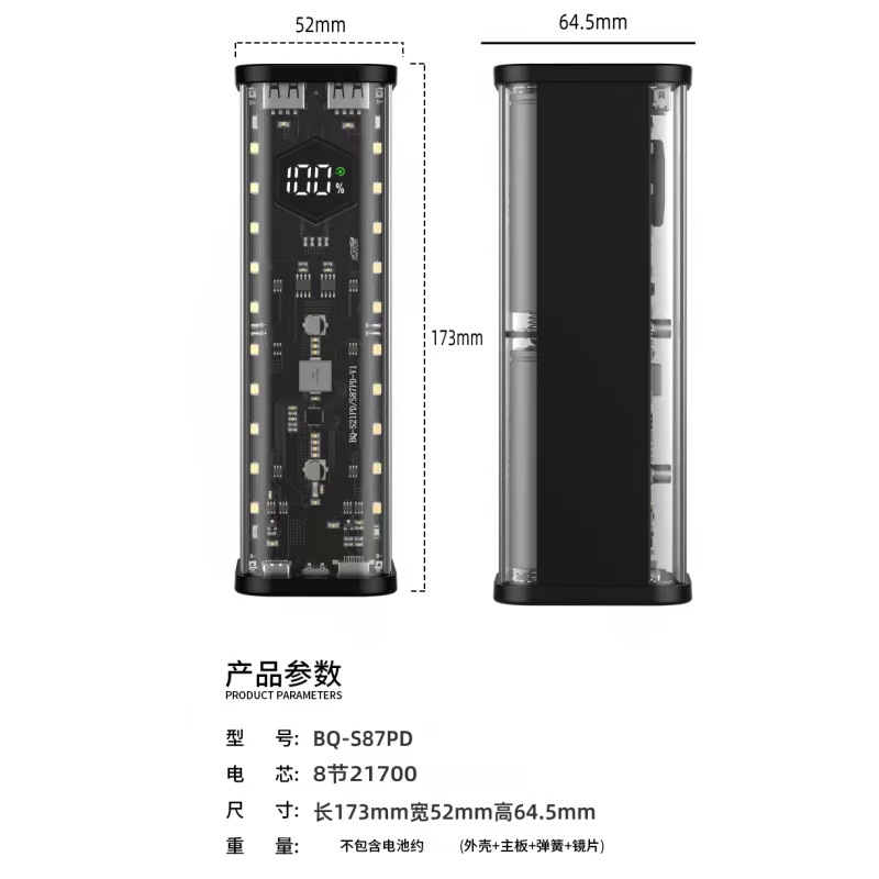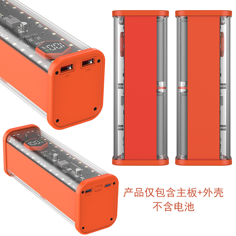 Carcasa de batería 21700 de 8 celdas sin soldadura, con carga rápida PD, conjunto de fuente de alimentación móvil con carga flash, material transparente, carcasa de banco de energía.