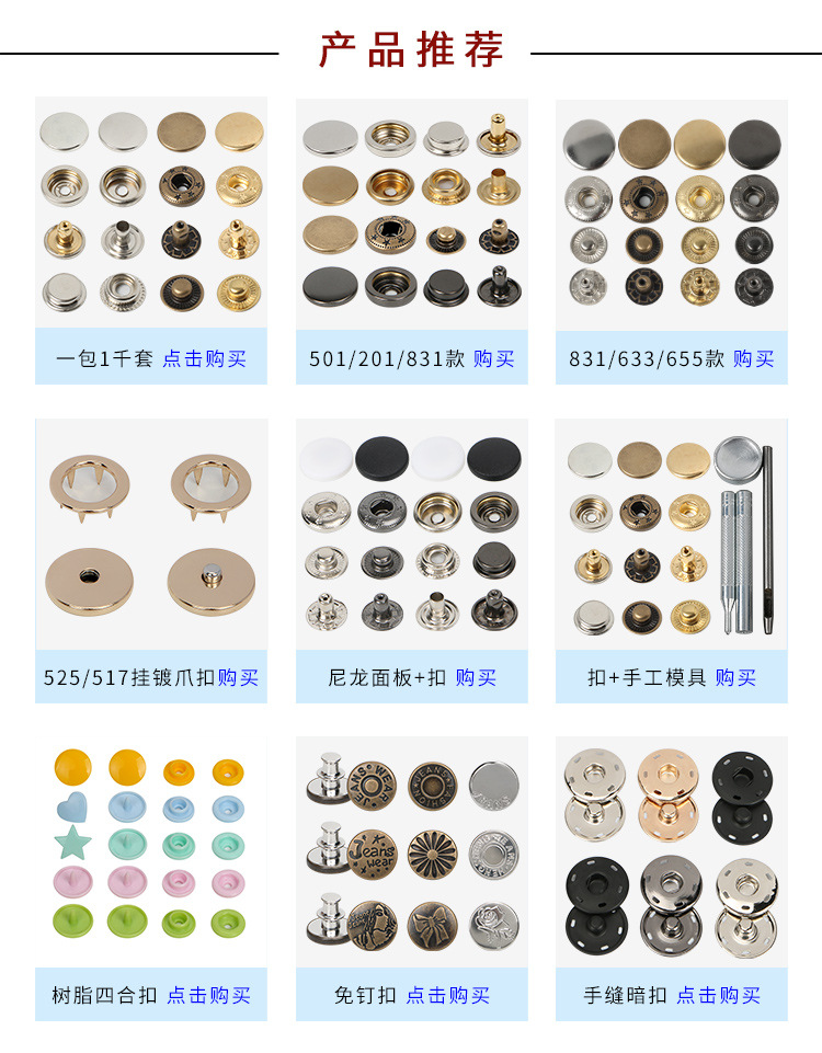 Fabricante en stock botón a presión bolsa de herramientas de instalación de metal botón a presión de mano molde abajo chaqueta hebilla oculta herramienta abrasiva al por mayor