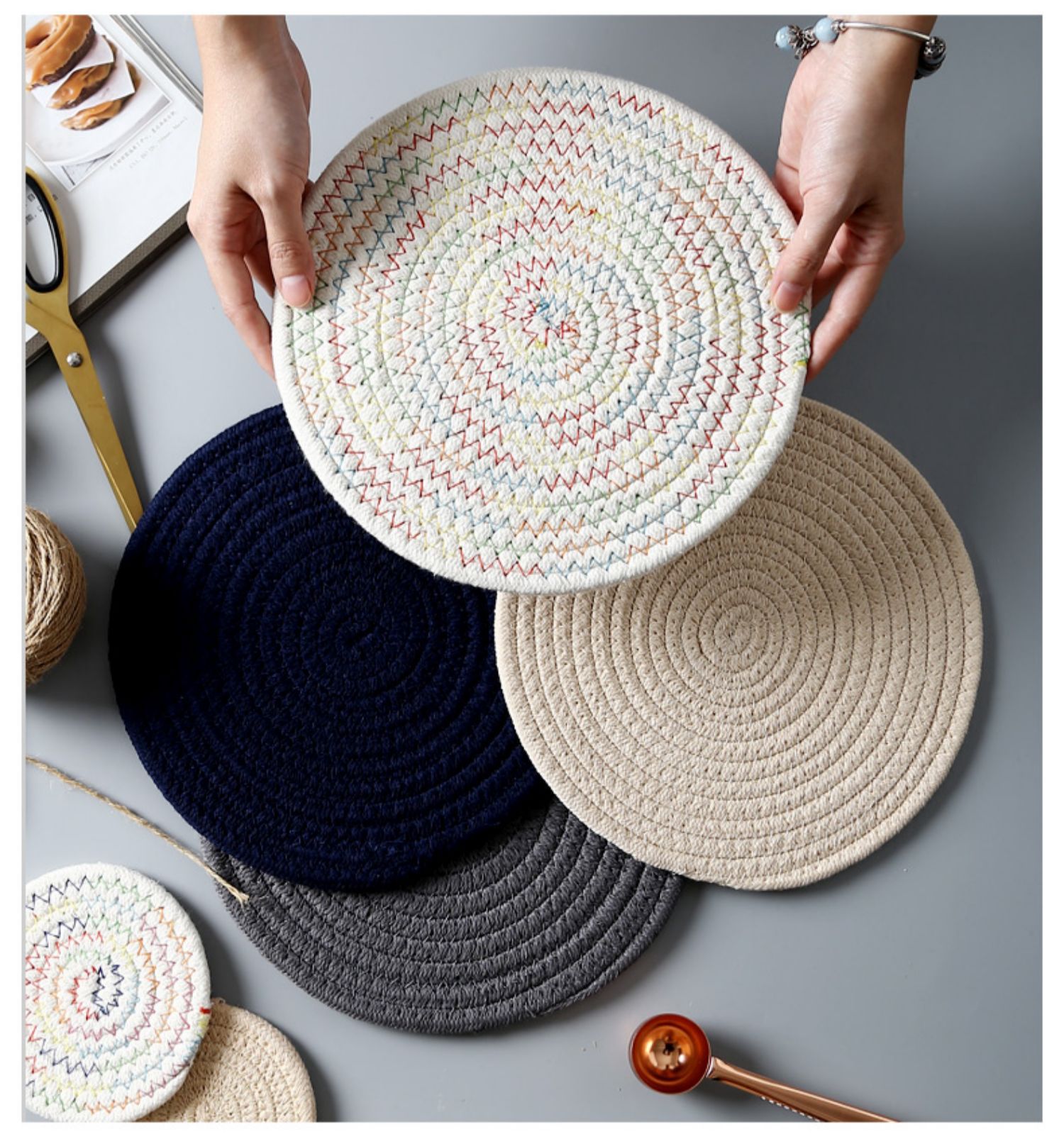 Mantel de Lino y Algodón Tejido, Aislante, Estilo Japonés, Antideslizante, para Platos, Tazones, Estilo Nórdico