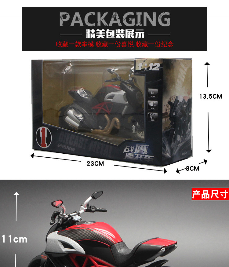 Modelo de motocicleta Chuanqi 1:12, modelo de motocicleta Ducati de aleación, juguete infantil de funcionamiento suave con sonido