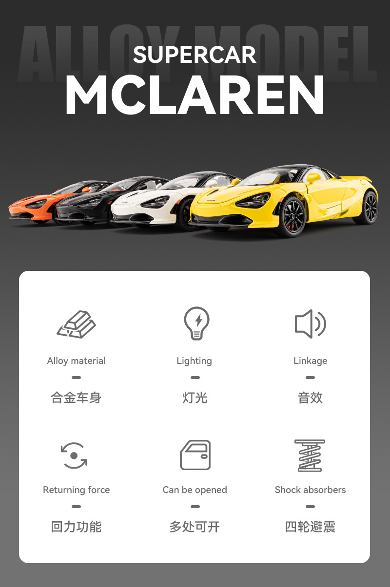 En caja 1-24 McLaren convertible rueda delantera con dirección cuatro ruedas con amortiguador juguetes al por mayor juguetes para niños