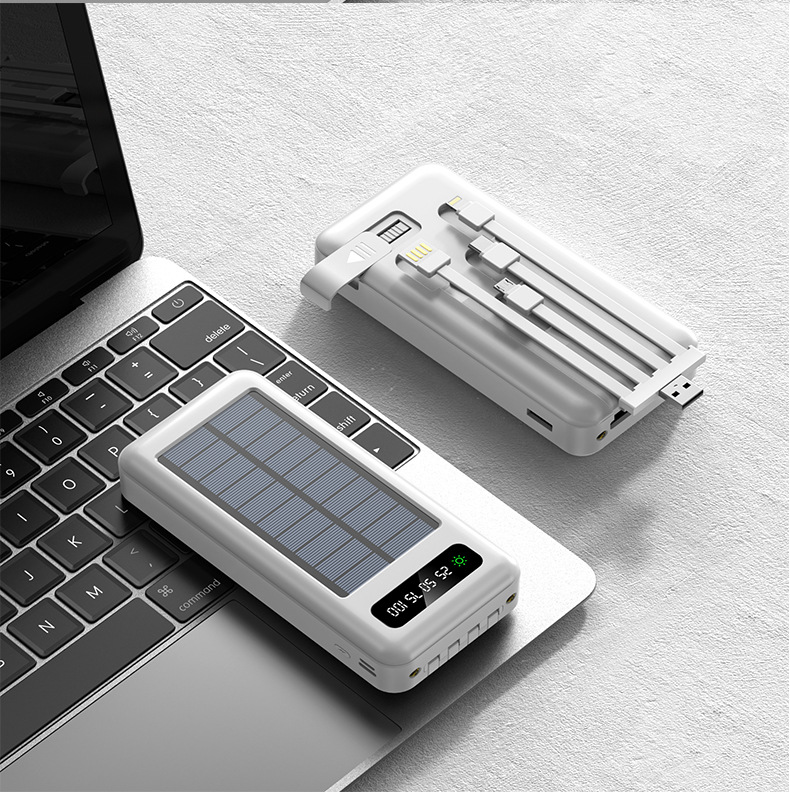 Solar auto-cableado banco de energía 20000 mA de gran capacidad ultrafino portátil al aire libre de energía móvil al por mayor