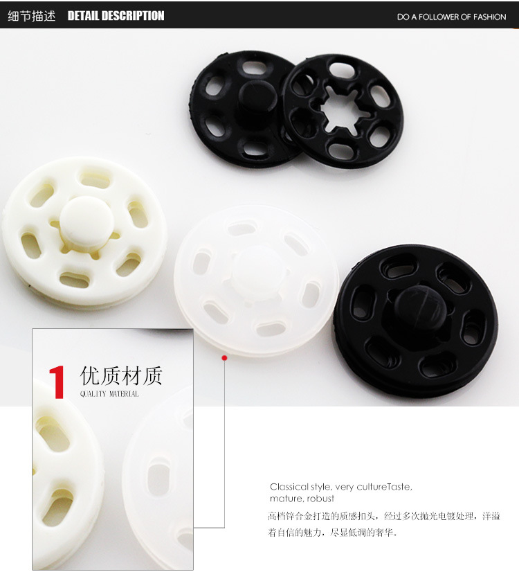 Suministro al por mayor de fábrica PV botón invisible camisa botón oculto accesorios de ropa Snap blanco y negro translúcido