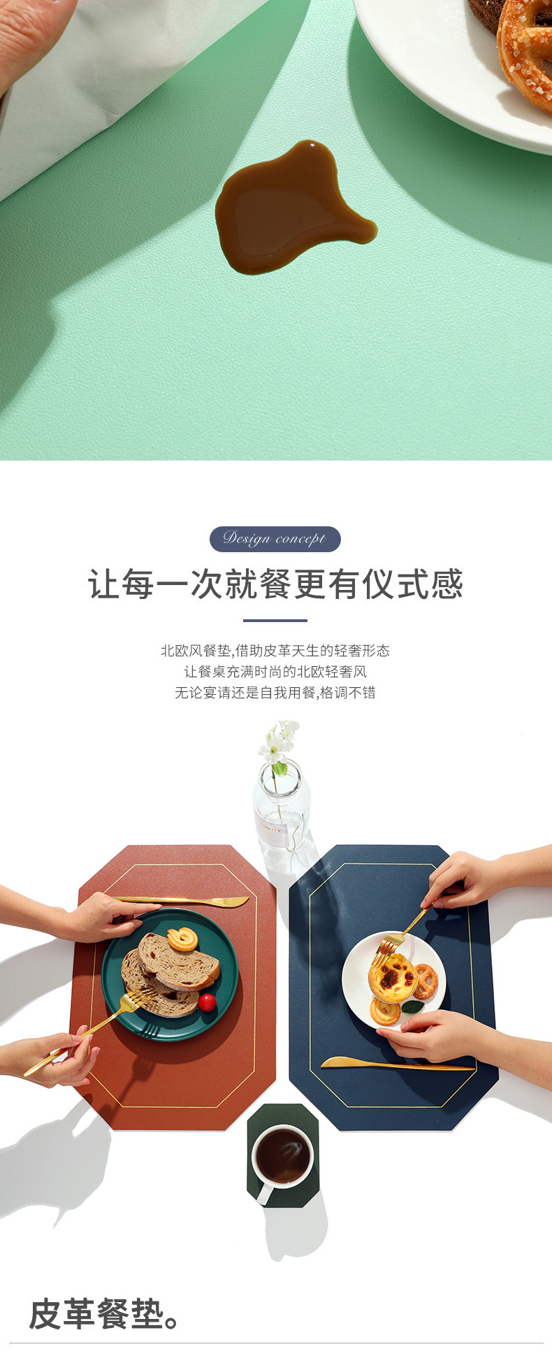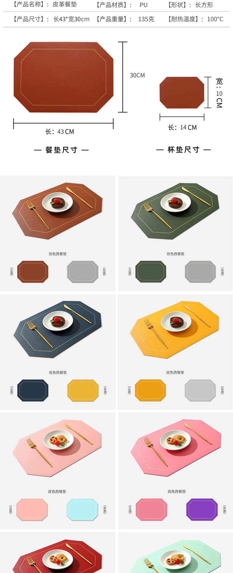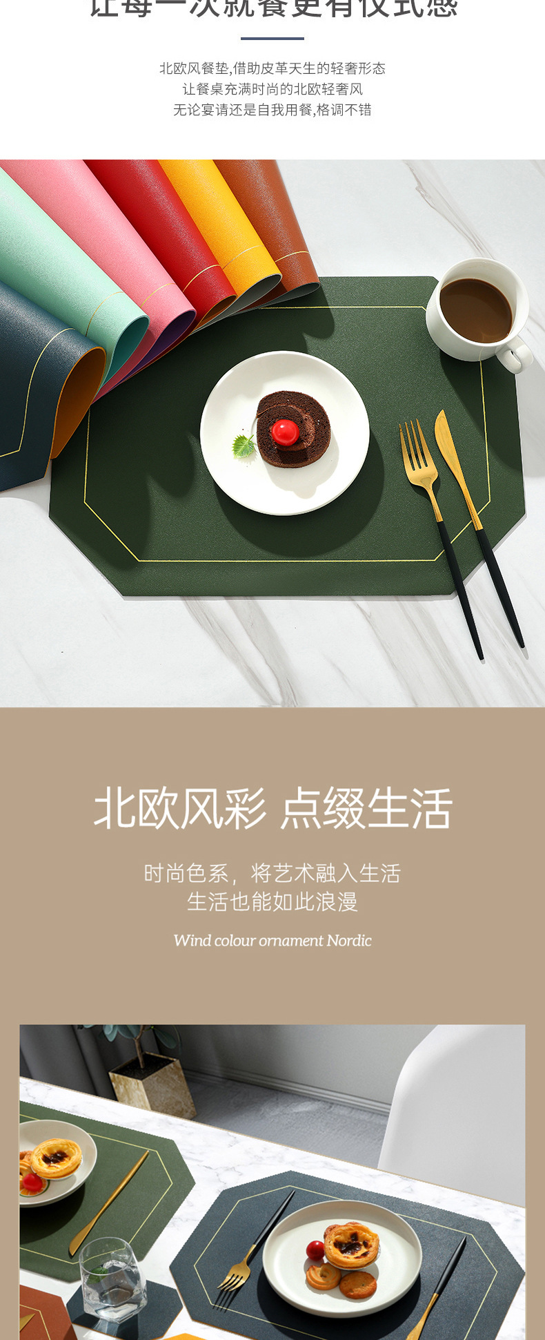 Nordic ins Western mantel a prueba de aceite estera de la tabla de PVC estera de la placa de color sólido de cuero doble cuadrado placemat fábrica al por mayor