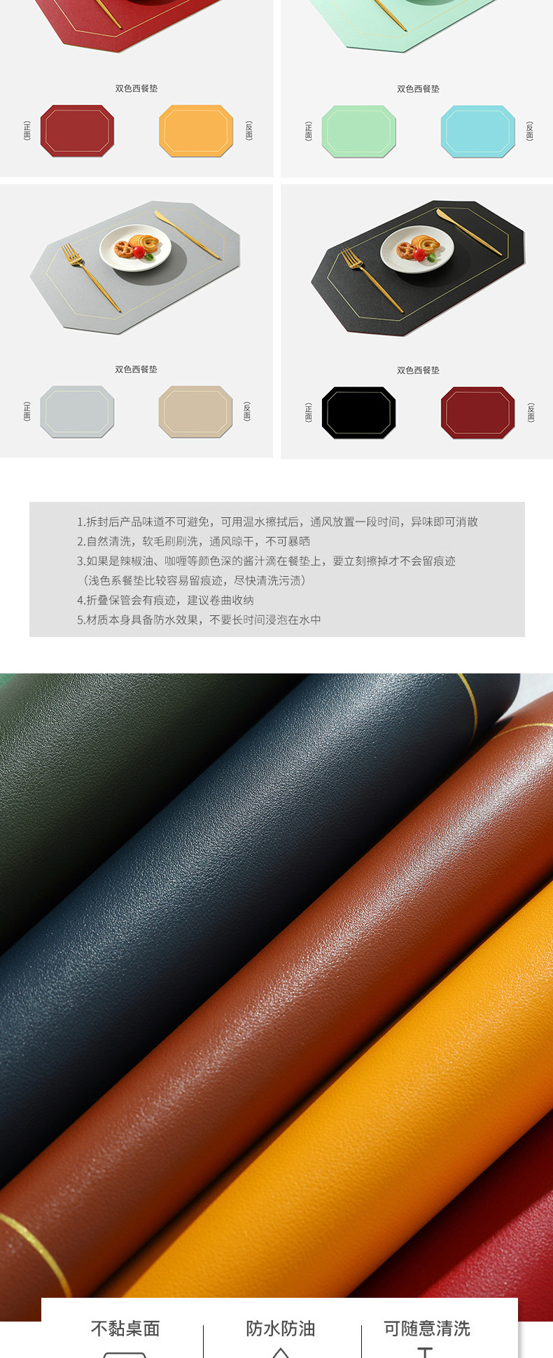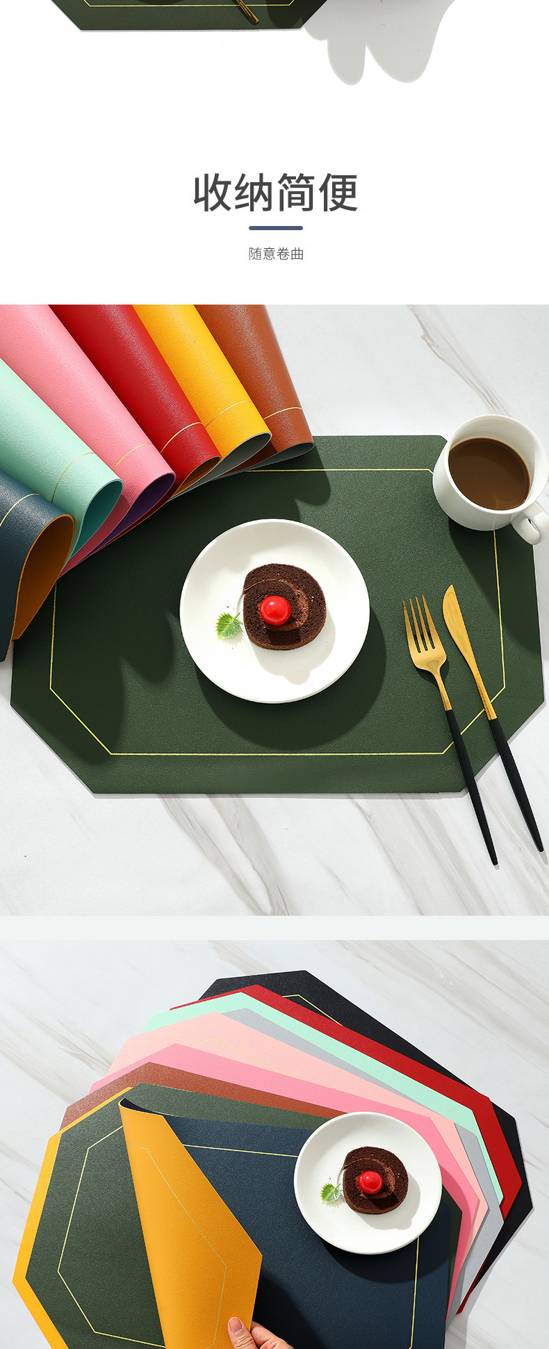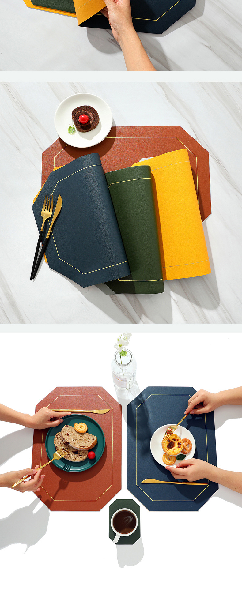 Nordic ins Western mantel a prueba de aceite estera de la tabla de PVC estera de la placa de color sólido de cuero doble cuadrado placemat fábrica al por mayor