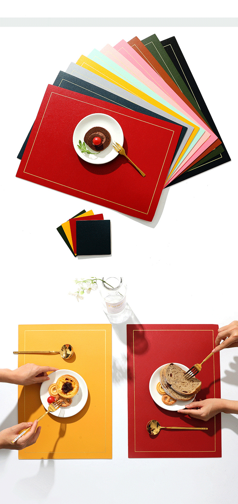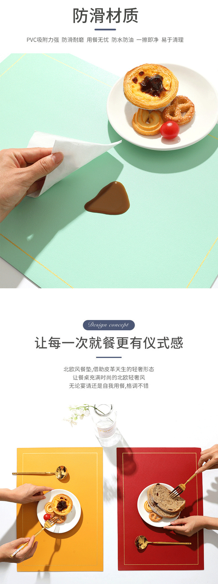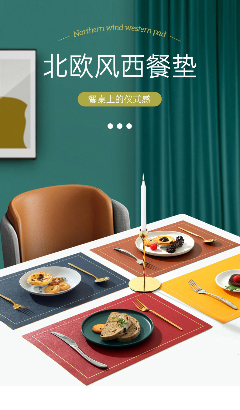 INS cuero nórdico occidental mantel cuadrado de color sólido PVC estera DE AISLAMIENTO impermeable estera de mesa de doble capa al por mayor estera de placa transfronteriza