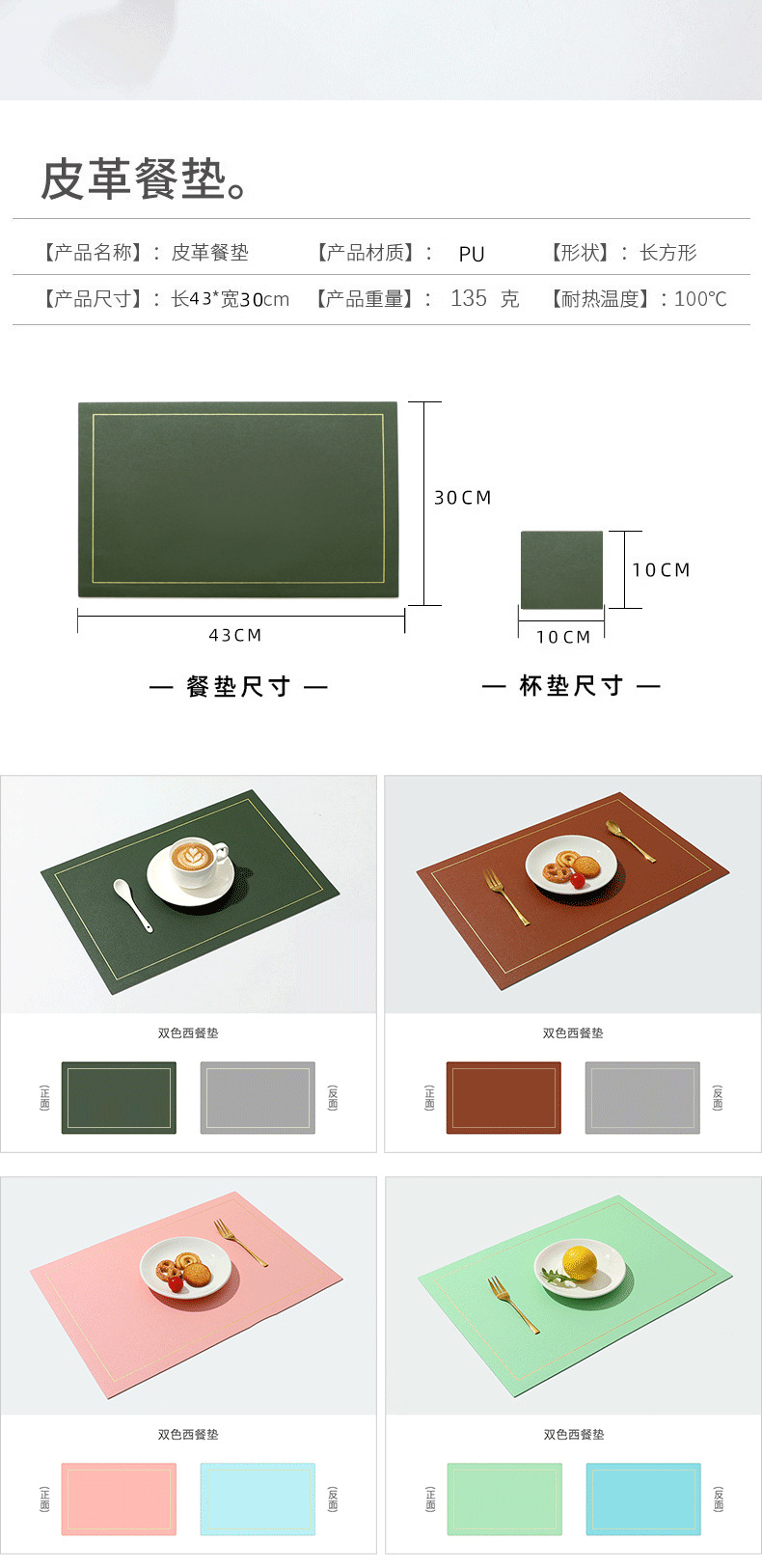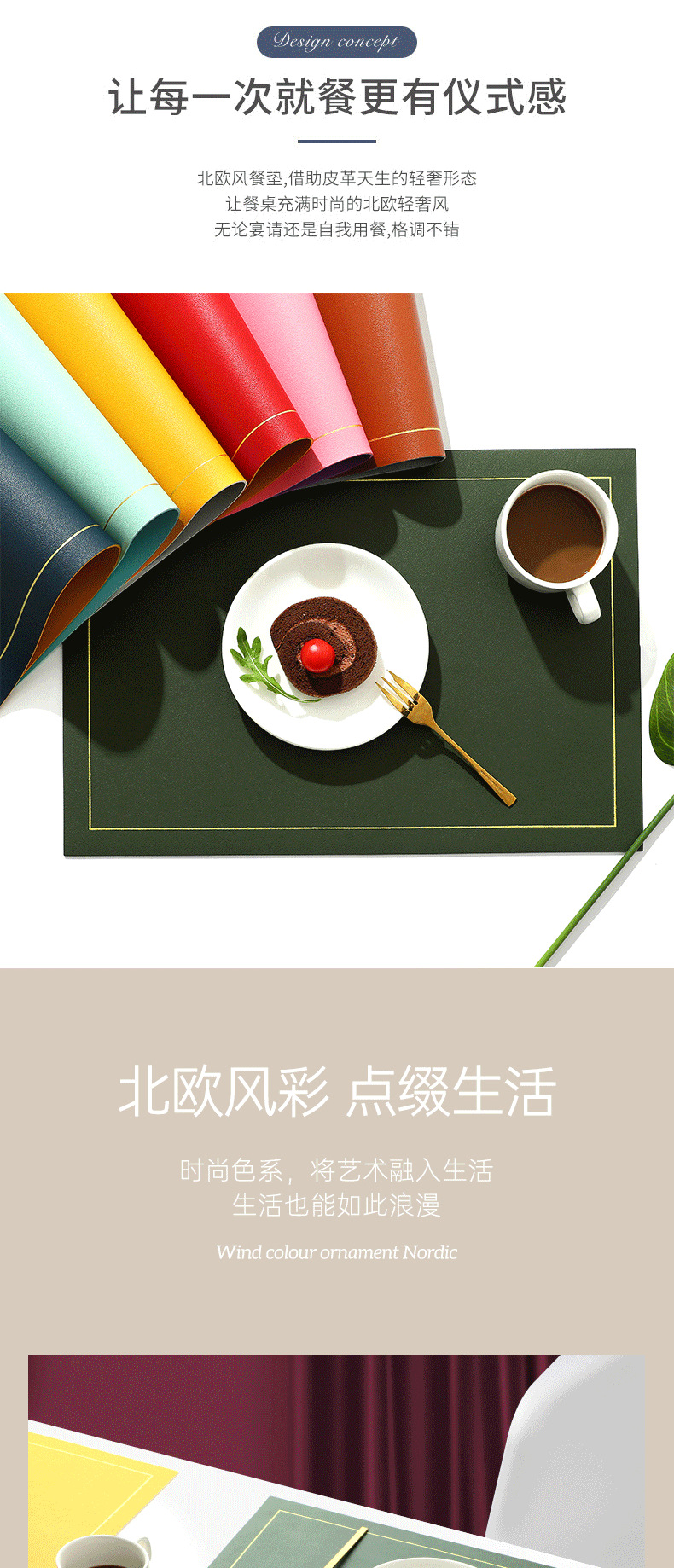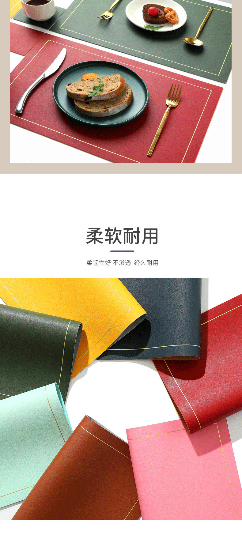 INS cuero nórdico occidental mantel cuadrado de color sólido PVC estera DE AISLAMIENTO impermeable estera de mesa de doble capa al por mayor estera de placa transfronteriza