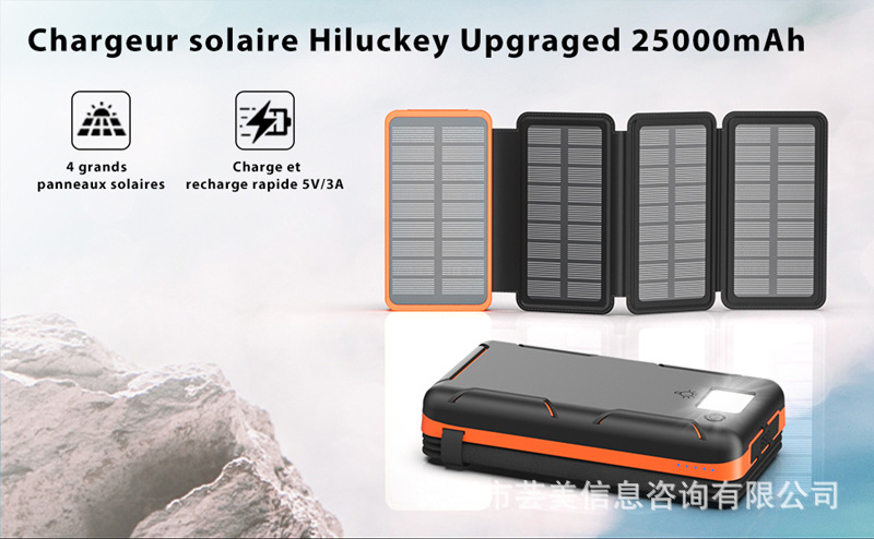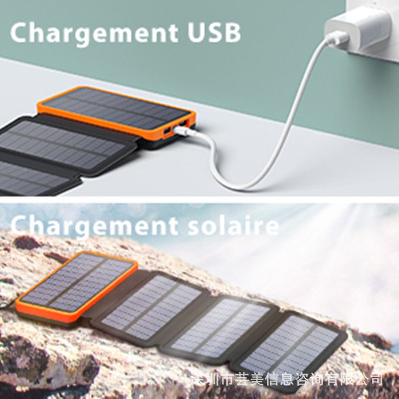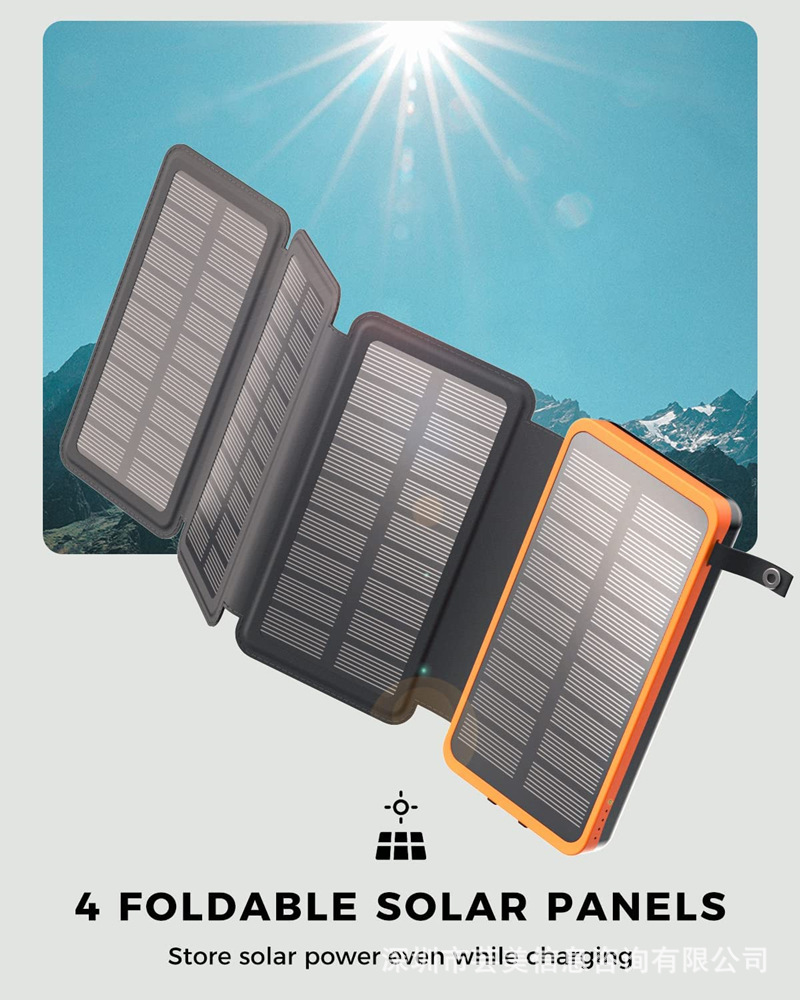 Banco de energía solar plegable impermeable transfronterizo 20000 mA al aire libre portátil universal de gran capacidad fuente de alimentación móvil