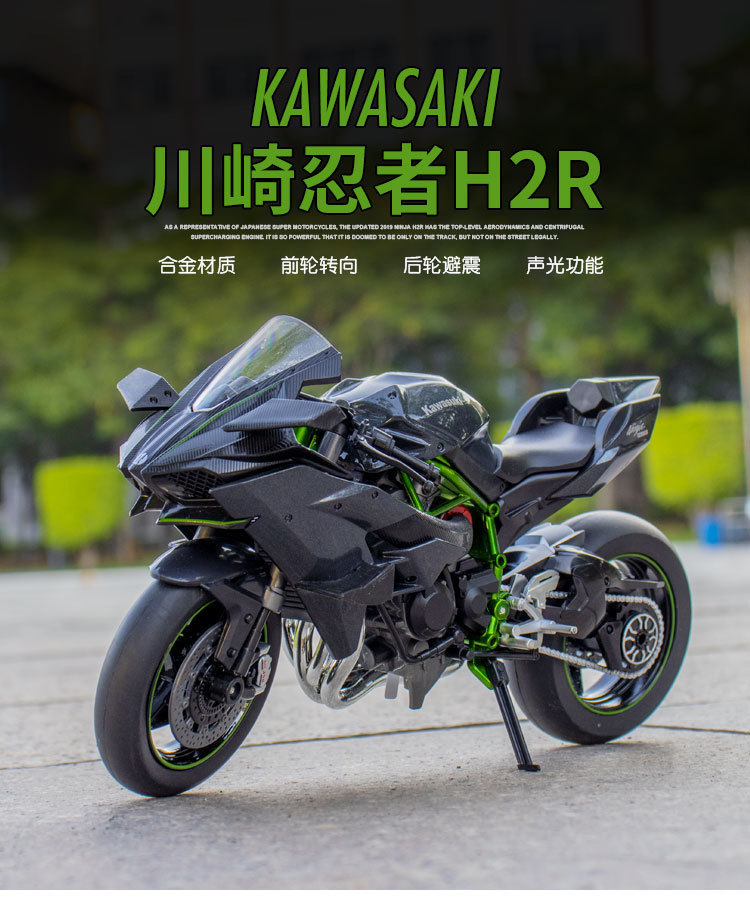 1:9 gran Kawasaki H2R motocicleta modelo de simulación de aleación de motocicleta modelo niño Colección Regalo de Cumpleaños hecho a mano