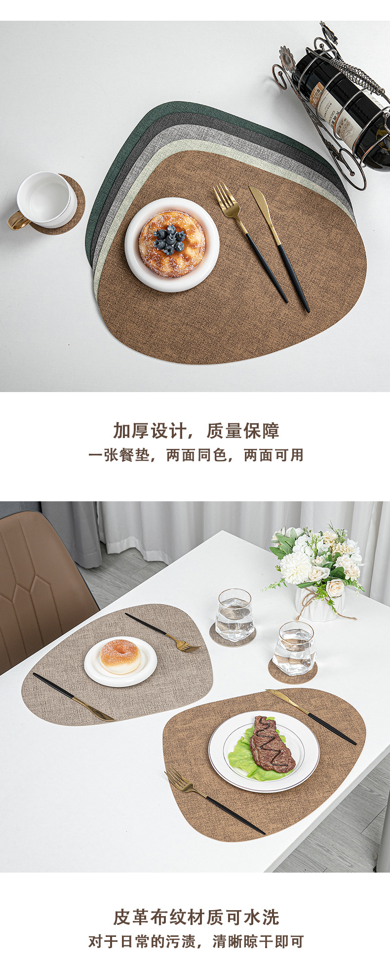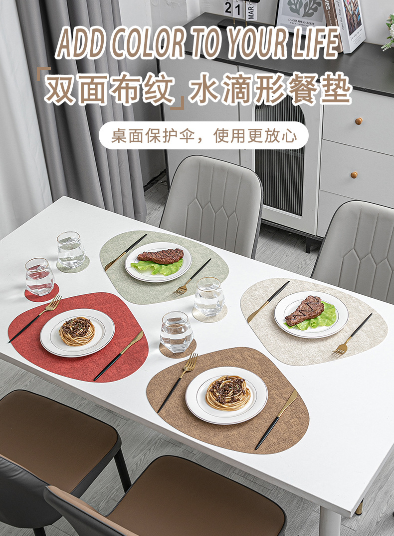 Manteles Individuales japoneses transfronterizos de tela en forma de gota, tapetes para platos impermeables y a prueba de aceite, tapetes aislantes para mesa, alfombrillas aislantes de pu para el hogar
