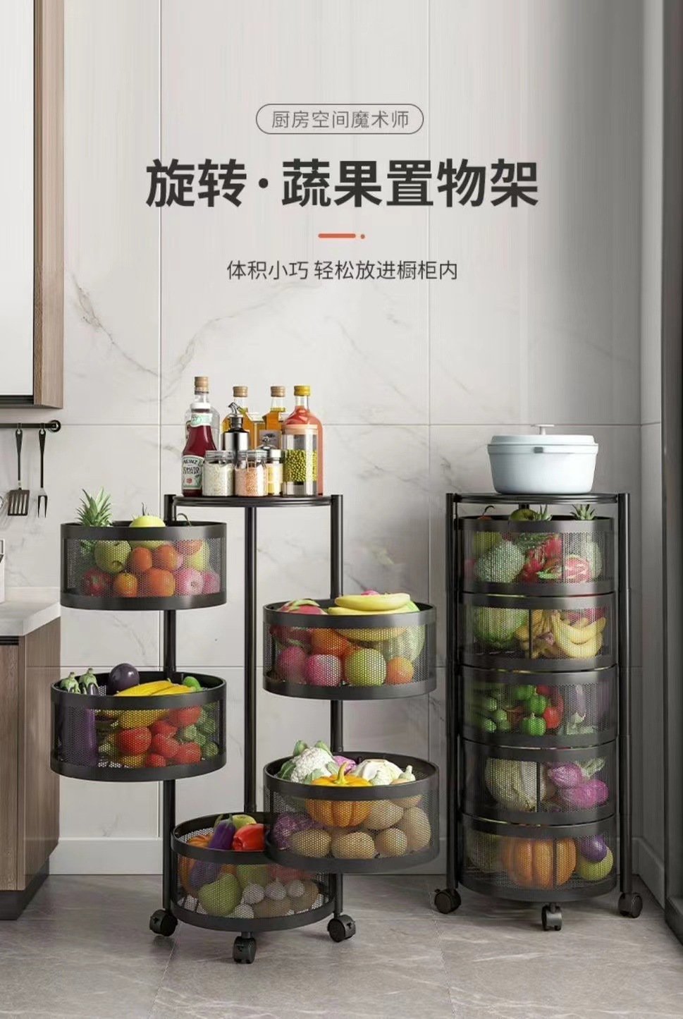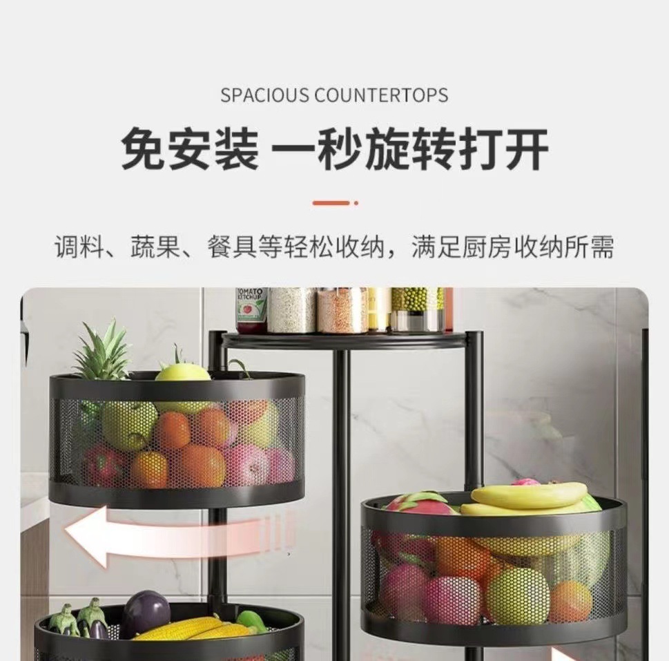 Estante de almacenamiento de cocina giratorio instalación libre de piso de múltiples capas estante de verduras hogar multifuncional fruta snack rack