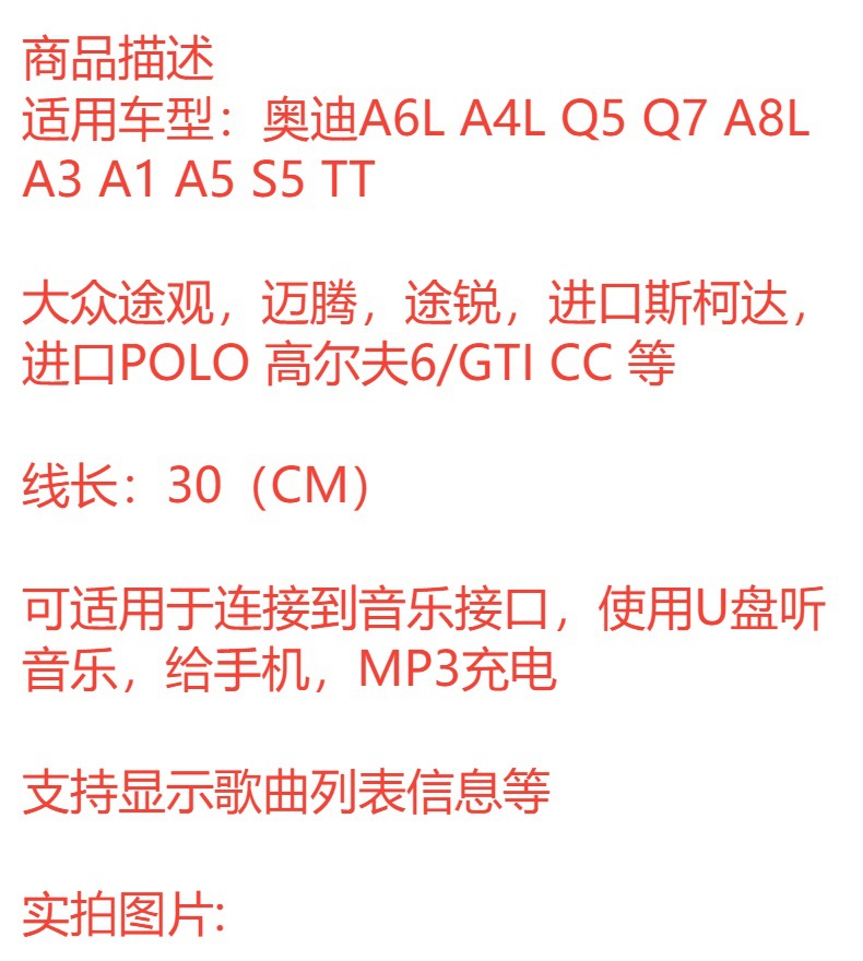 Aplicable a Audi Volkswagen AMI cable de datos USB