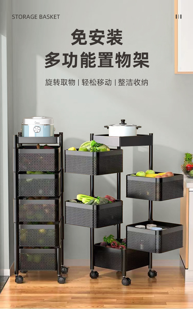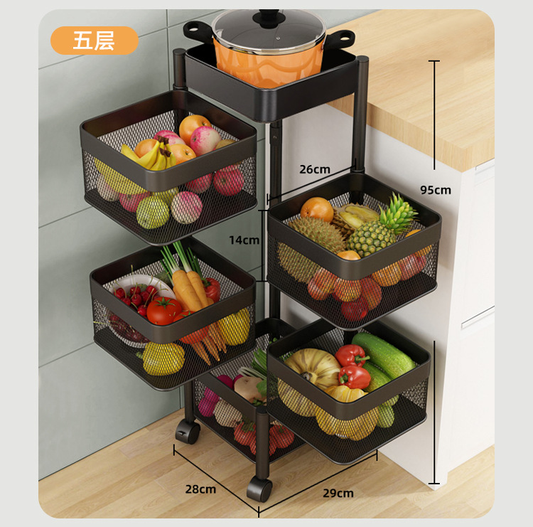 Estante de almacenamiento de frutas y verduras, tipo canasta cuadrada, multilayer, con ruedas y sin necesidad de instalación