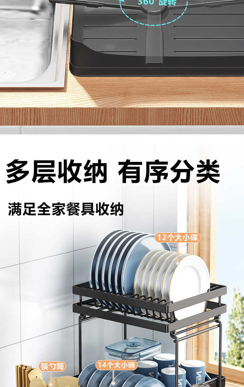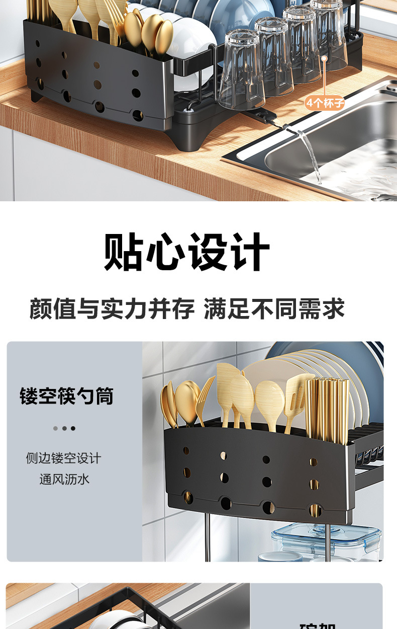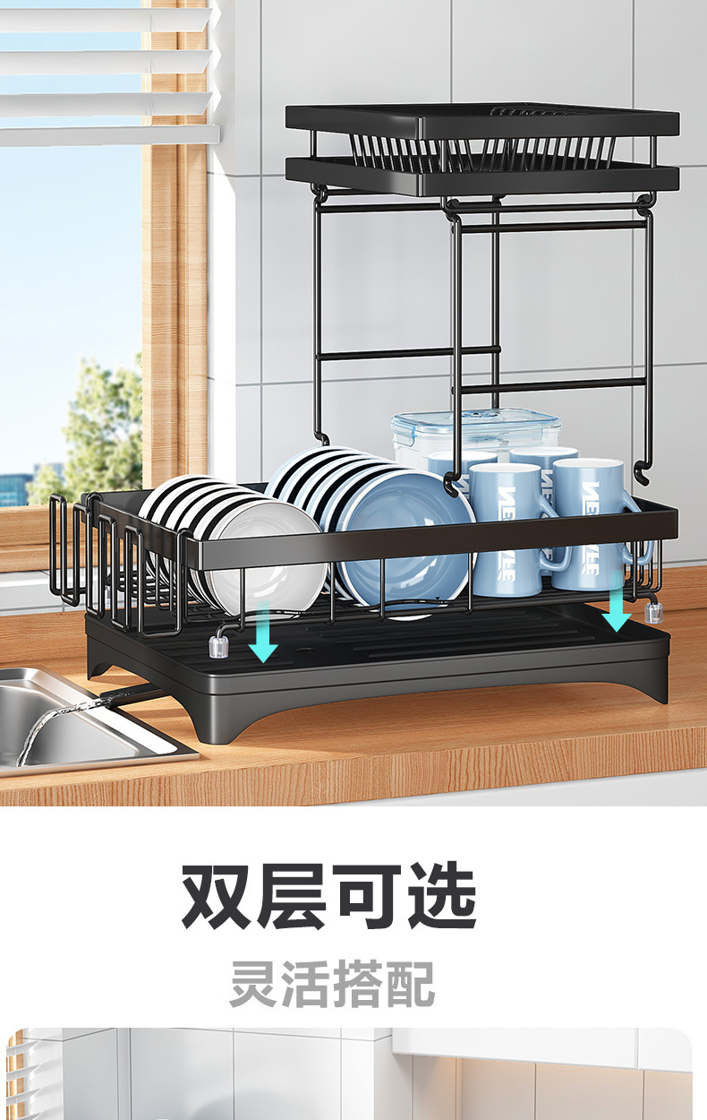 Cocina de drenaje plato estante palillos estante de almacenamiento extraíble guía de agua de doble capa estante para platos palillos rack