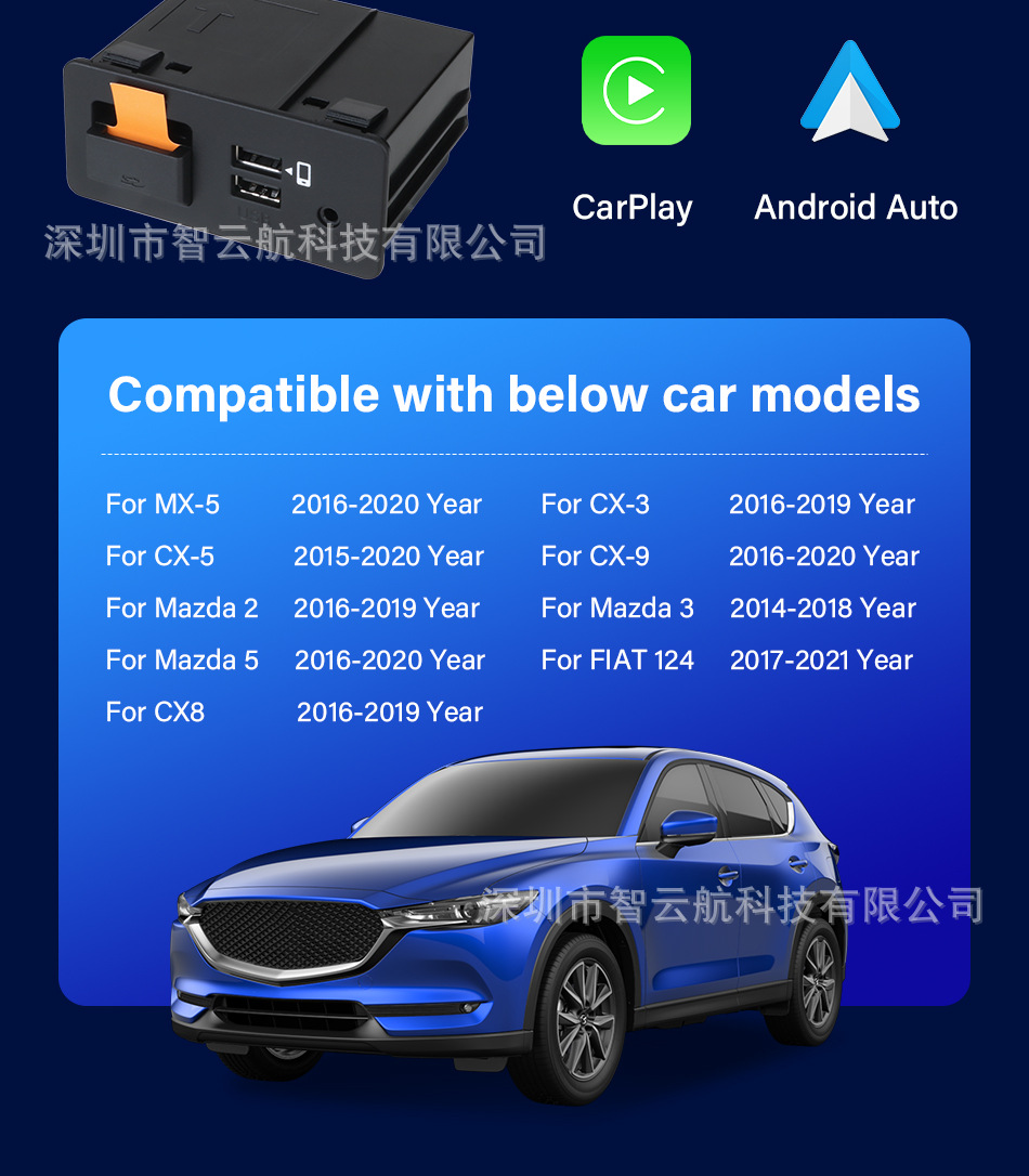 | Especificaciones | Mazda Cable Carplay-USB,Mazda Cable Carplay-C,Carplay-P3 inalámbrico Mazda,Mazda Wireless Carplay-U/C,Mazda Wireless Carplay 3.2,Mazda Wireless Carplay P3B |
