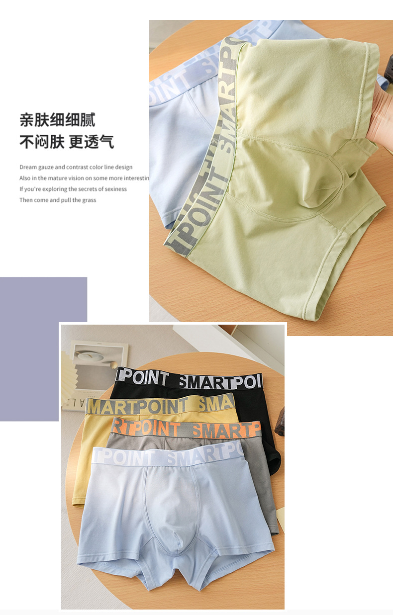 Calzoncillos bóxer de cintura media para hombre, shorts de cuatro esquinas, ropa interior juvenil para todas las estaciones, elegante, cómoda, deportiva, ropa interior masculina de puro algodón.