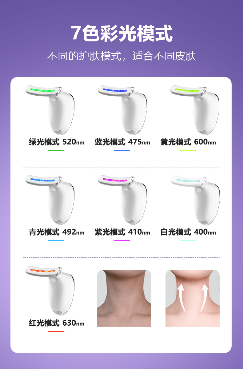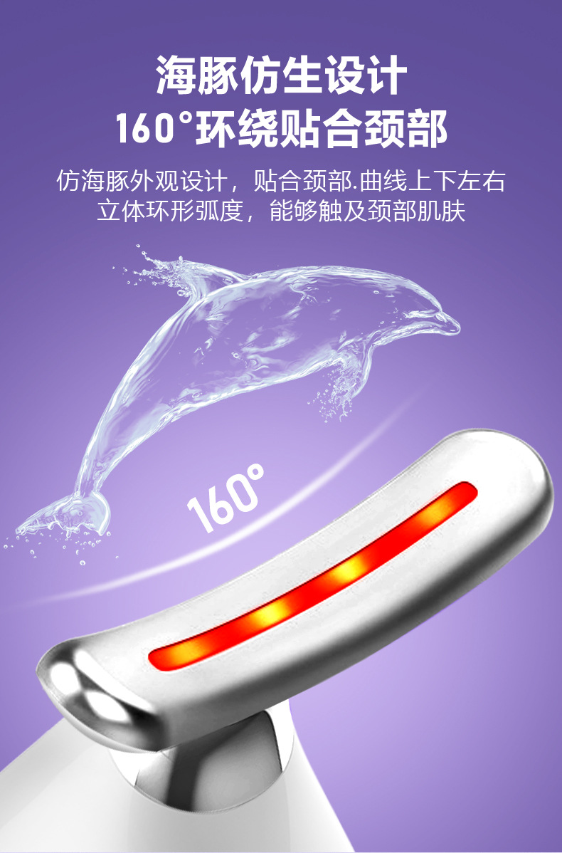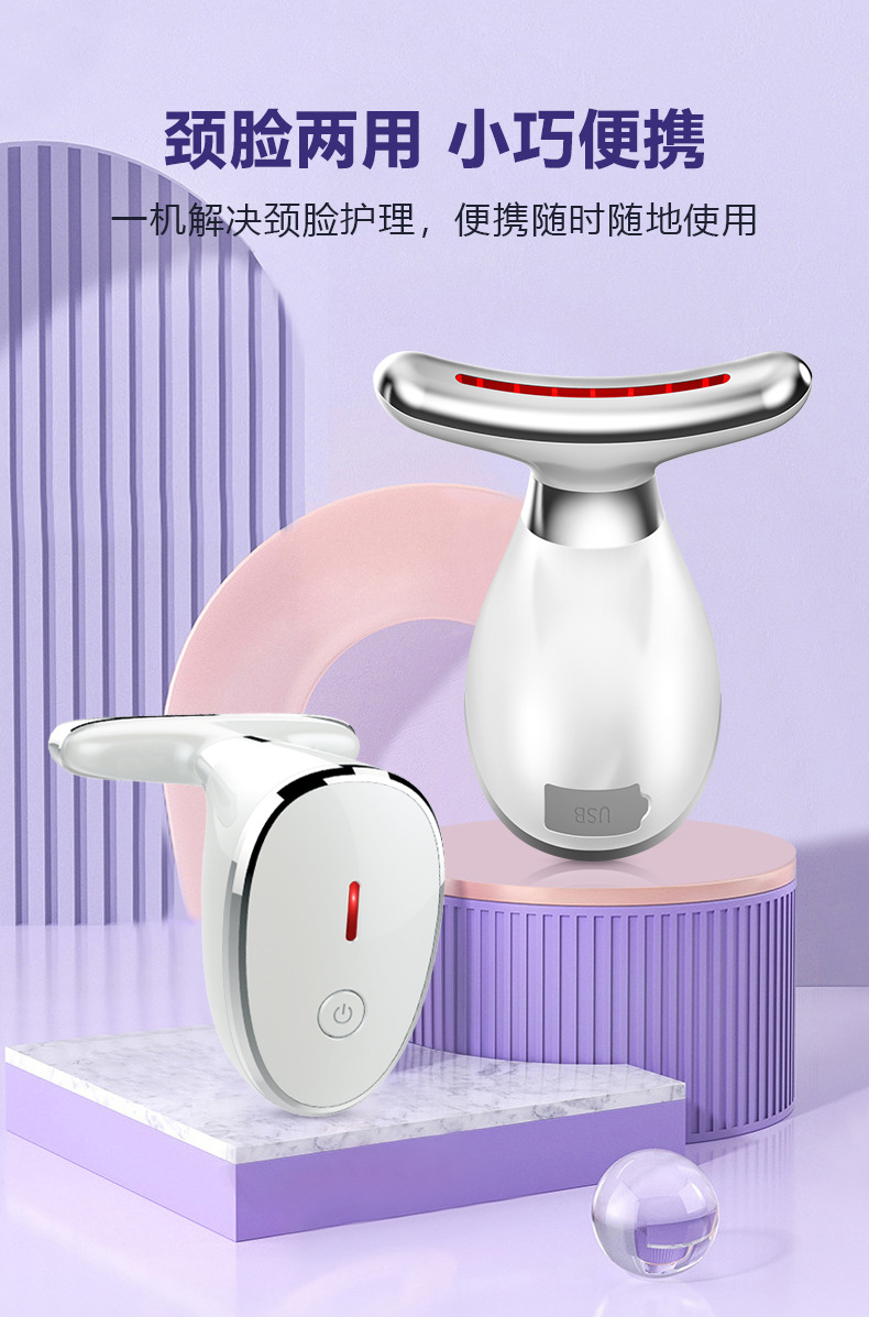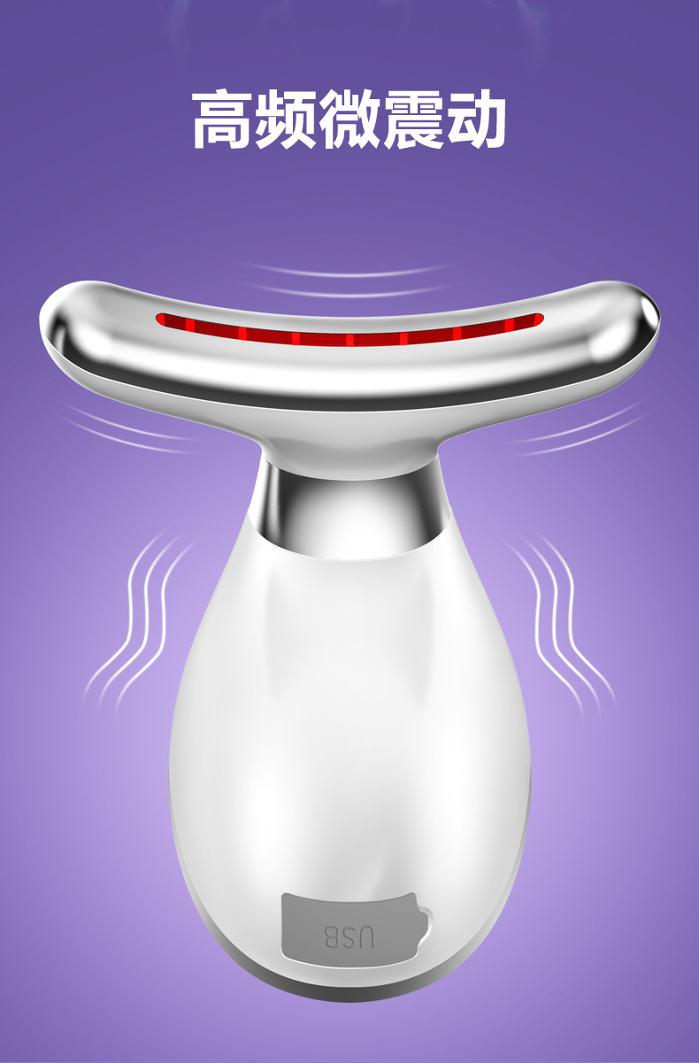 Nuevo producto Medidor de belleza para el cuello Medidor de patrón de cuello de masaje de vibración Plancha pequeña para levantar el cuello y la cara Instrumento de belleza de introducción de luz de color