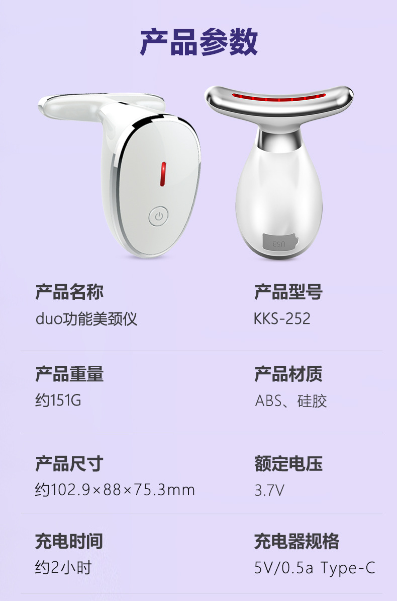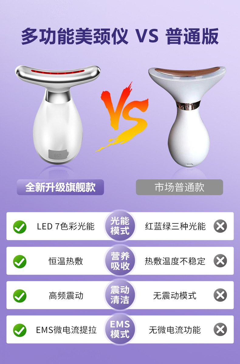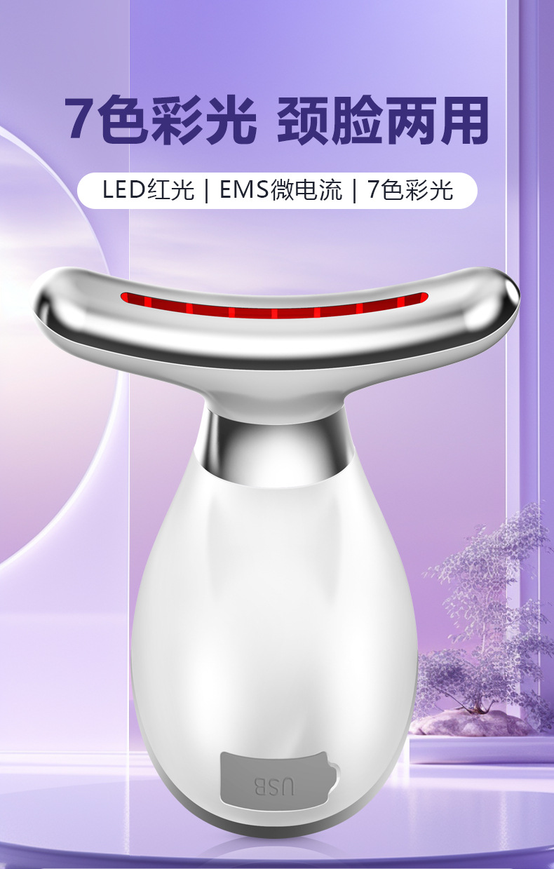 Nuevo producto Medidor de belleza para el cuello Medidor de patrón de cuello de masaje de vibración Plancha pequeña para levantar el cuello y la cara Instrumento de belleza de introducción de luz de color