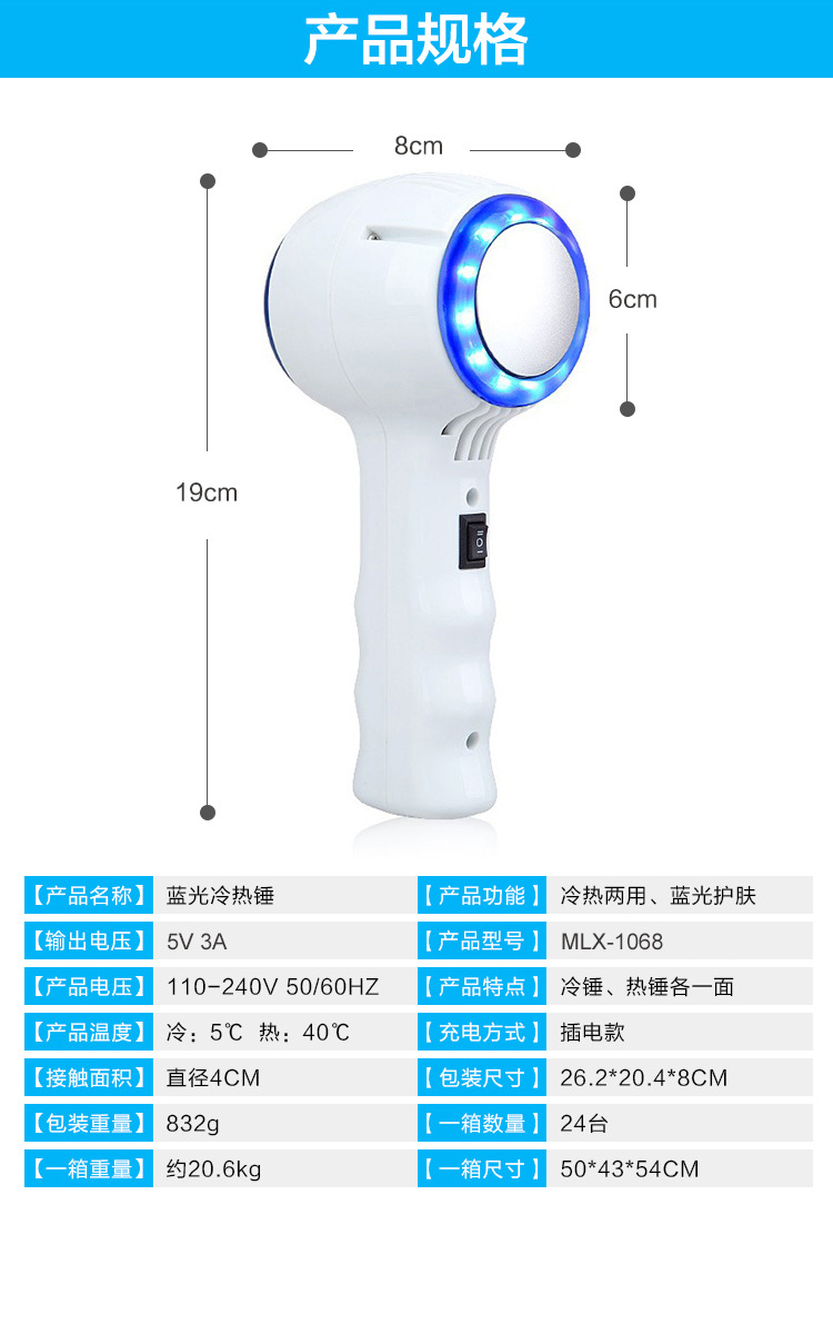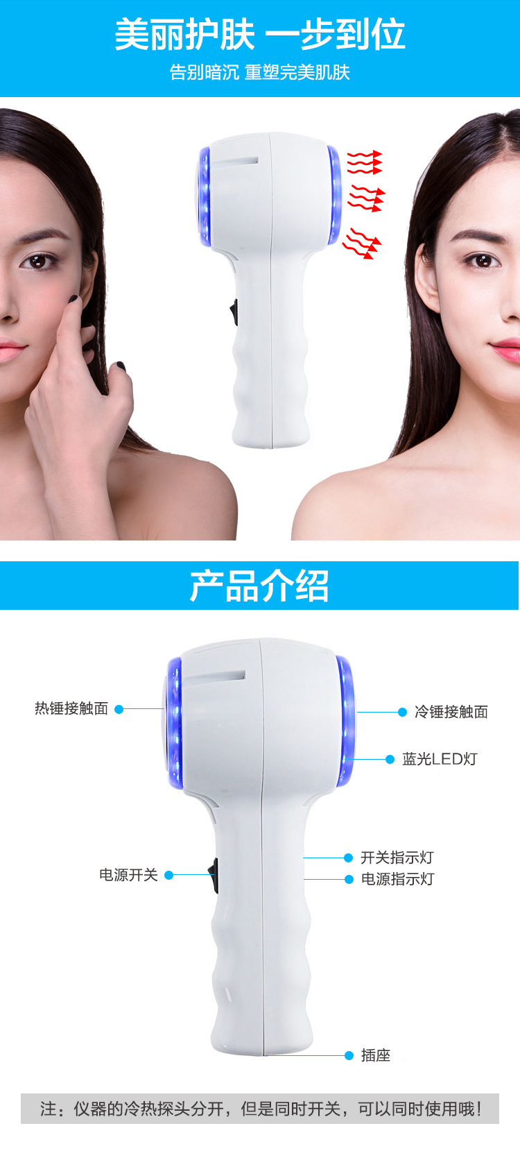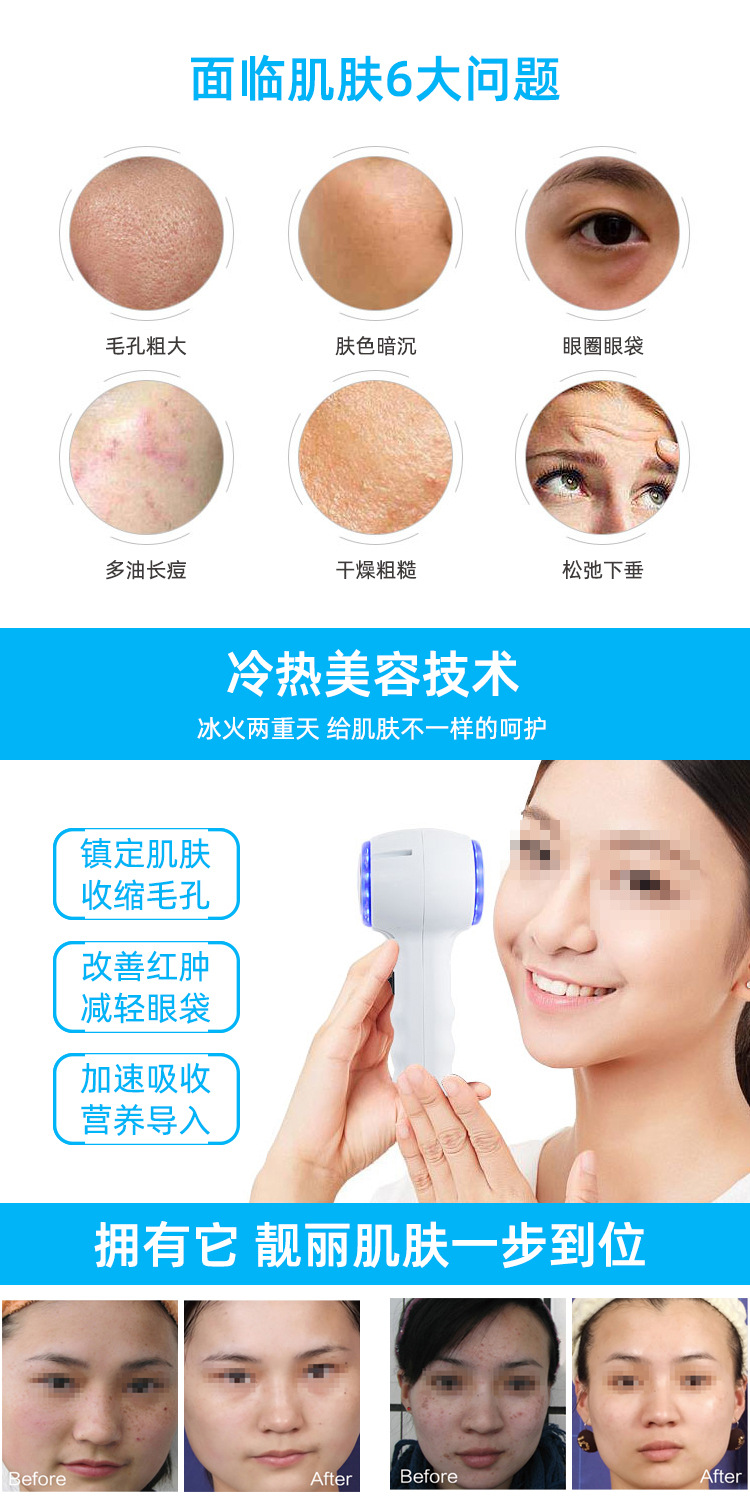El sudeste asiático europeo y americano transfronterizo al por mayor instrumento de belleza frío y caliente color luz rejuvenecimiento de la piel mejora la temperatura instrumento de importación de piel de hielo martillo frío y caliente