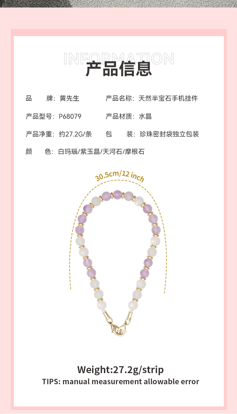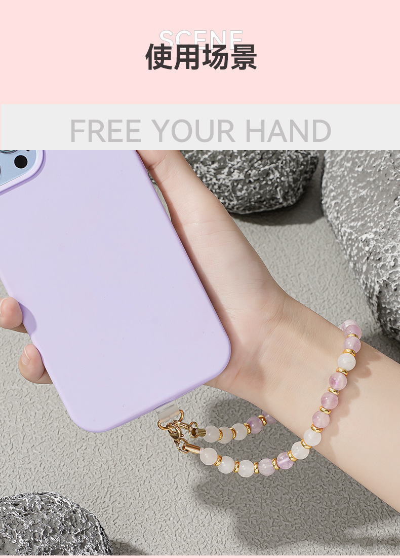 Cadena para teléfono móvil con cuentas de amatista de cristal natural, cristal rosa, obsidiana, amazonita y turquesa blanca, cordón para teléfono móvil DIY