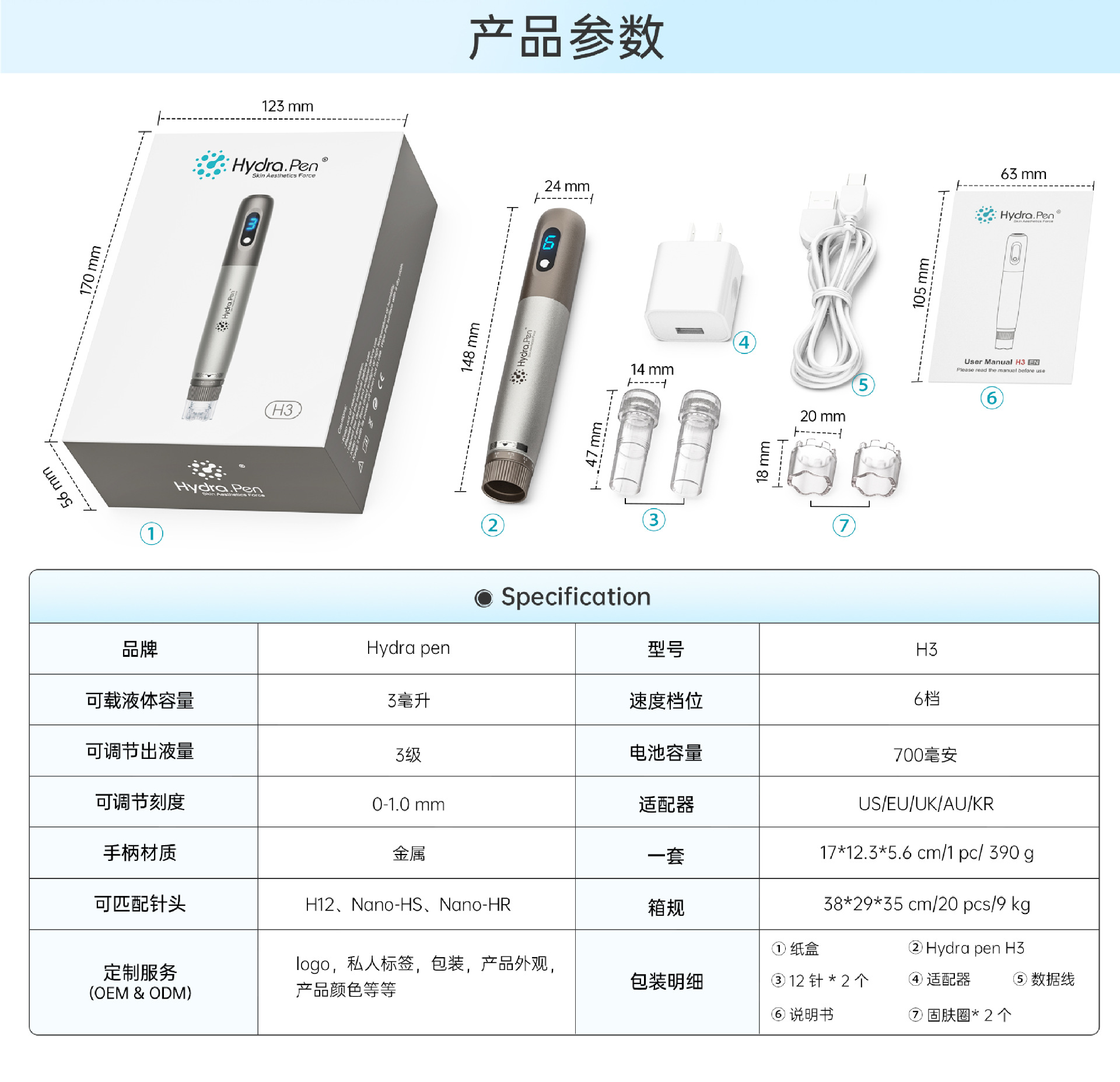 Hydra Pen H3 micro aguja eléctrica pequeña pluma blanca soluble en agua micro aguja medio embrión nano microcristal instrumento H2 agua luz importación instrumento