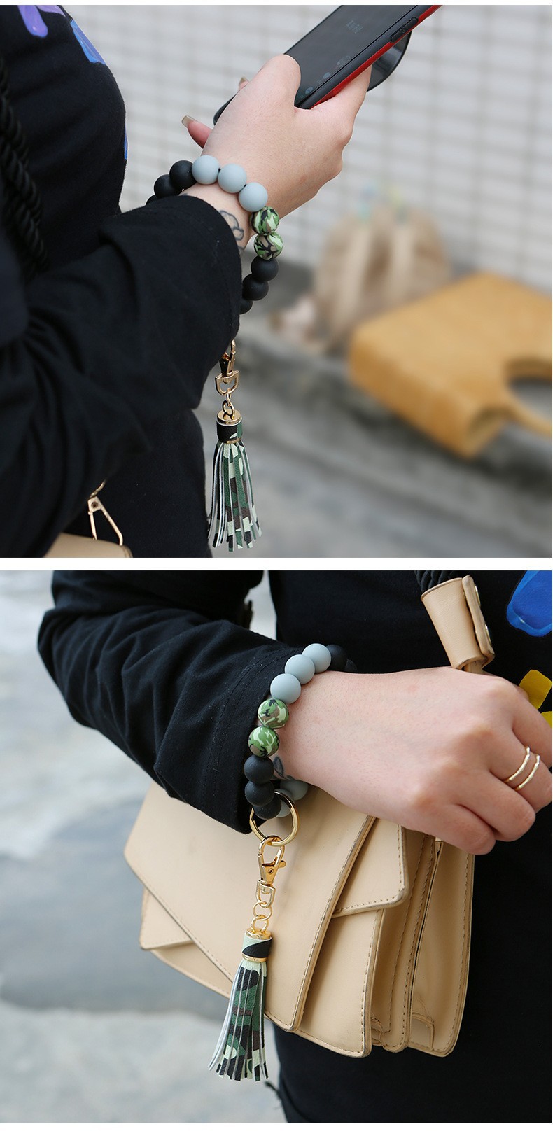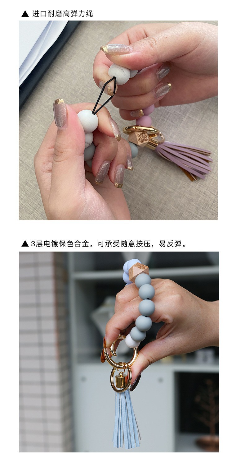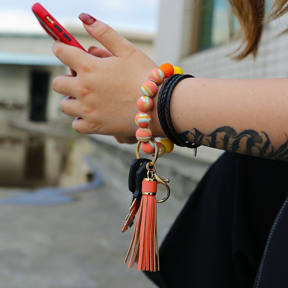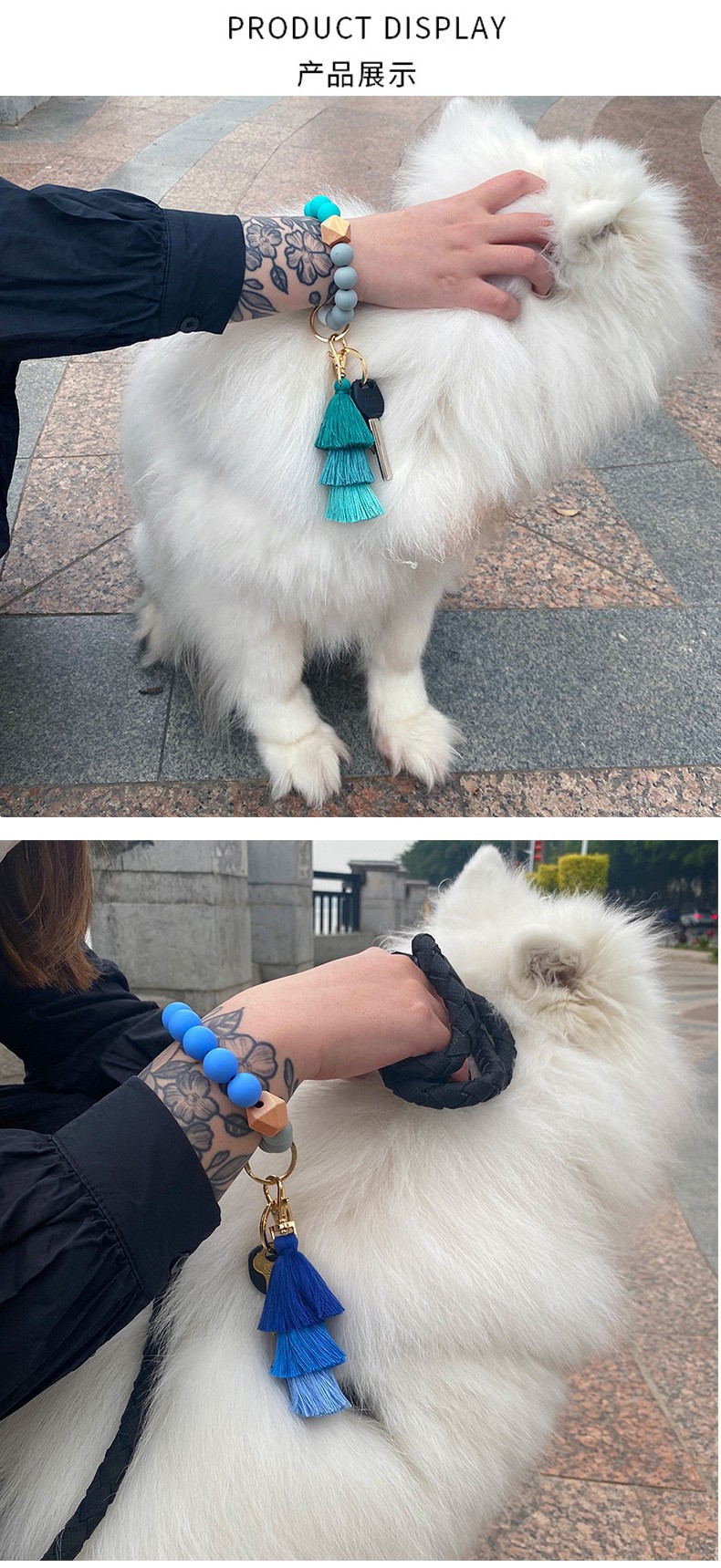 Amazon europeo y americano popular silicona muñeca llavero hecho a mano con cuentas de cuero borla pulsera al por mayor