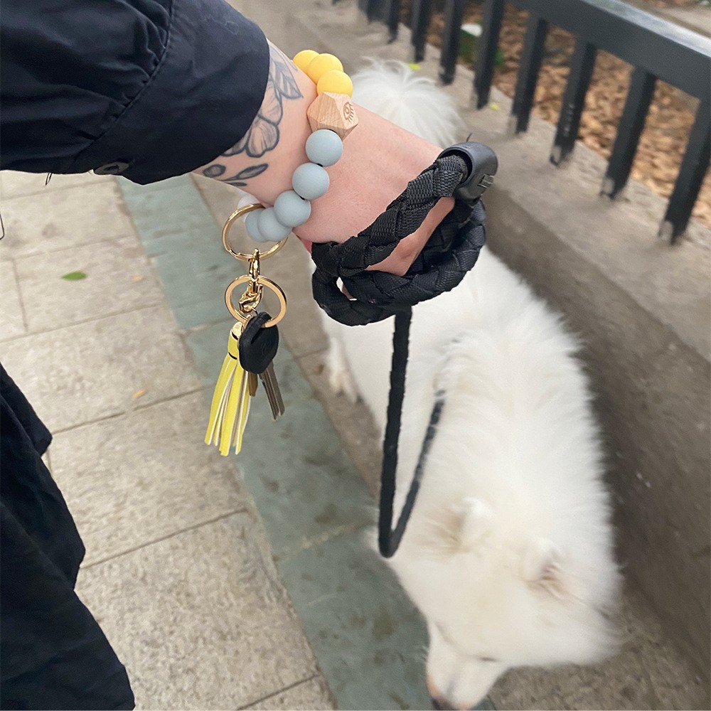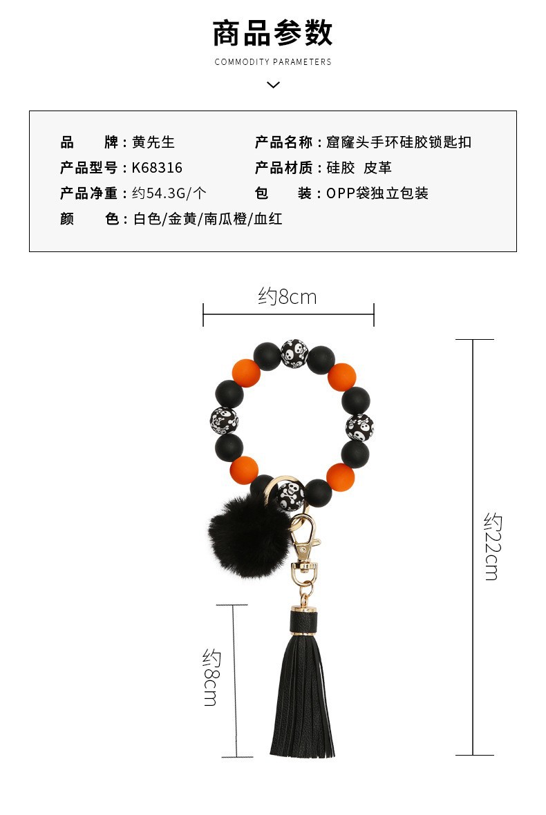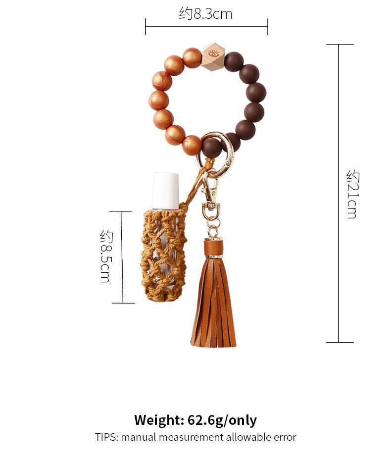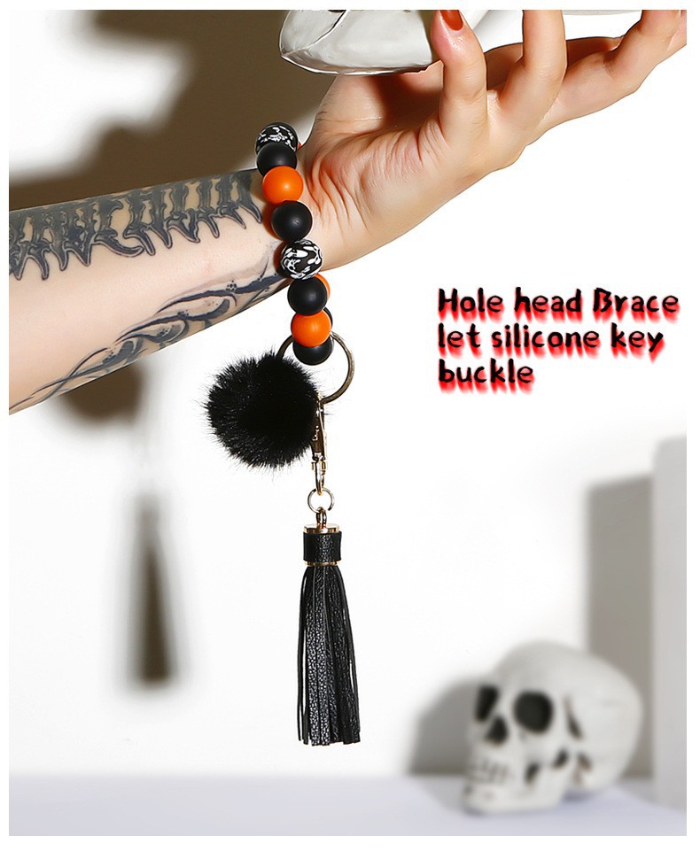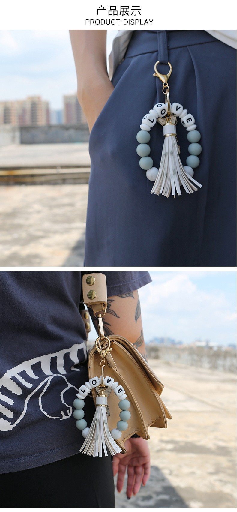 Amazon europeo y americano popular silicona muñeca llavero hecho a mano con cuentas de cuero borla pulsera al por mayor