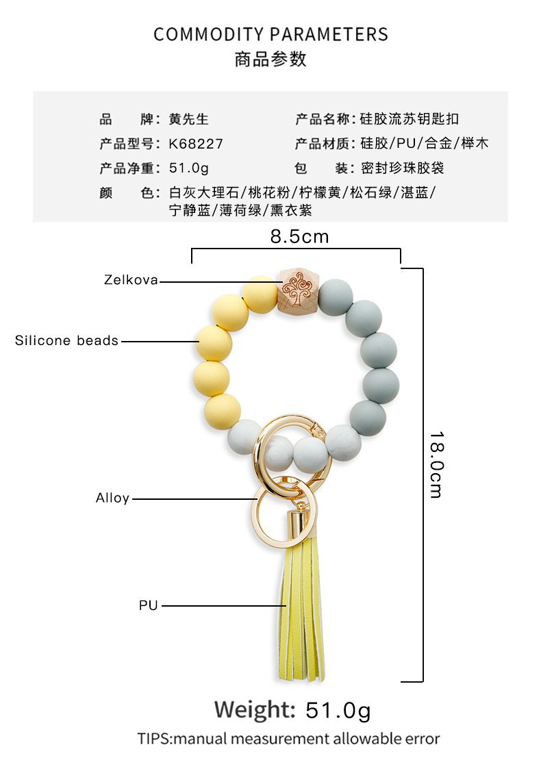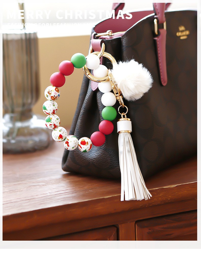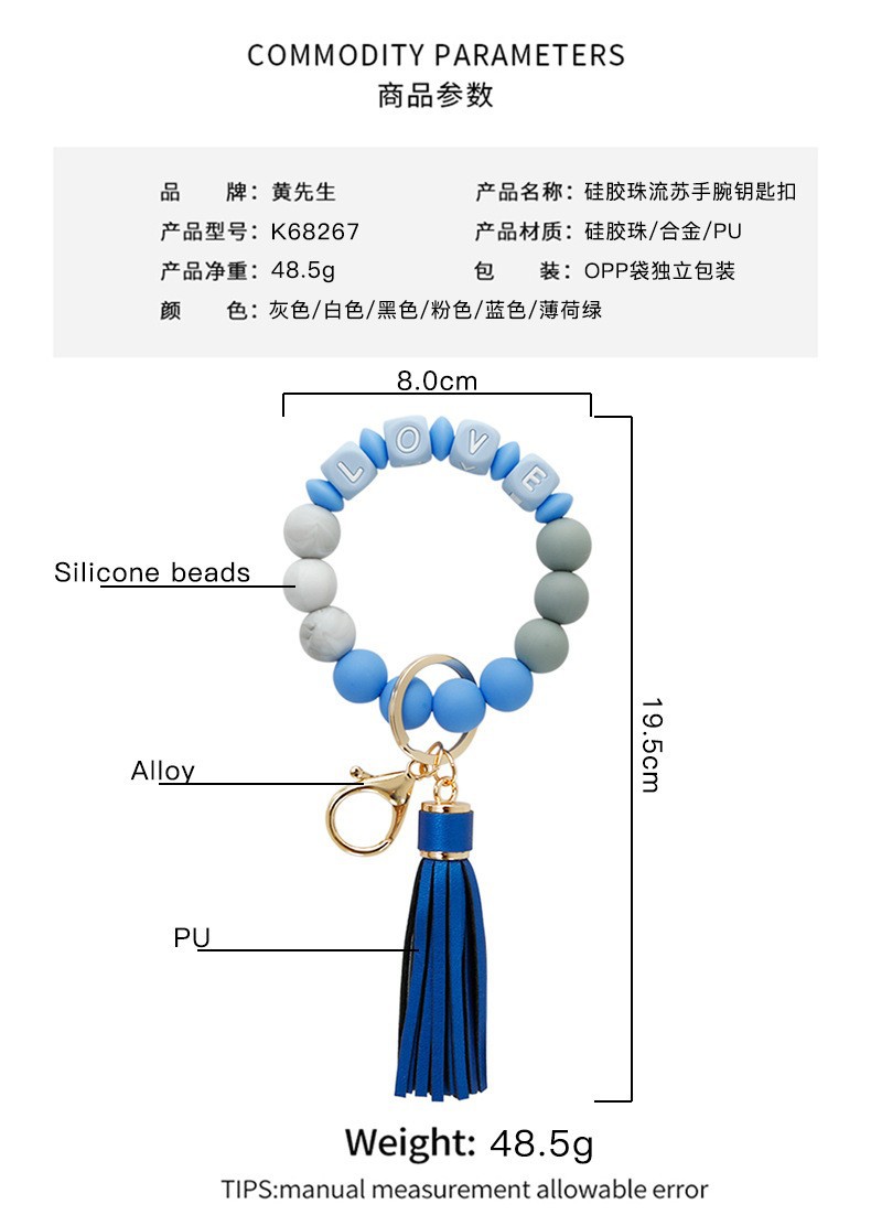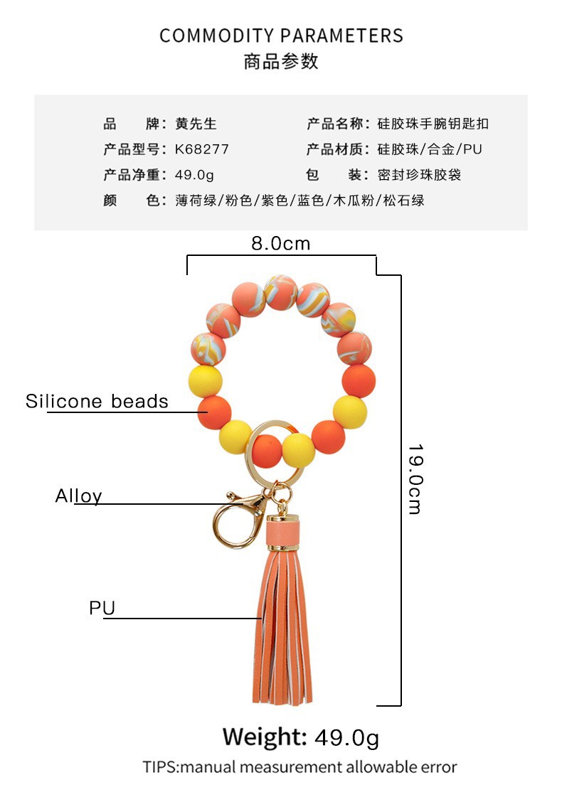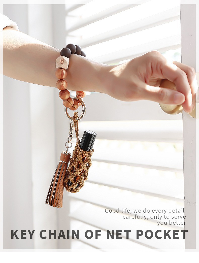 Amazon europeo y americano popular silicona muñeca llavero hecho a mano con cuentas de cuero borla pulsera al por mayor