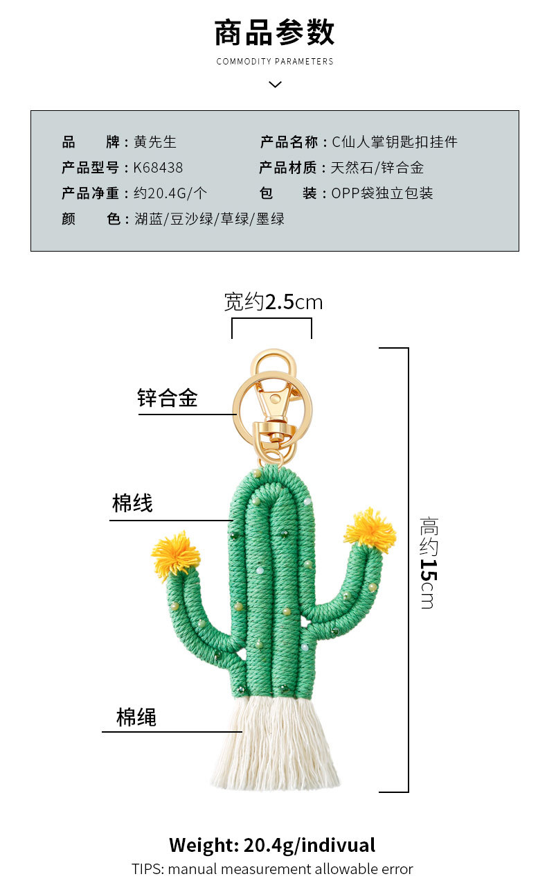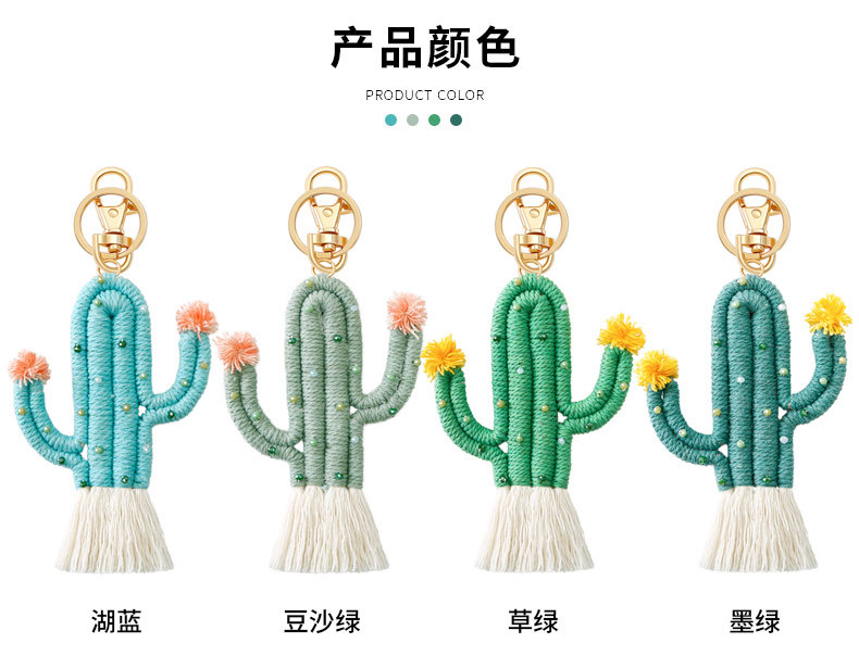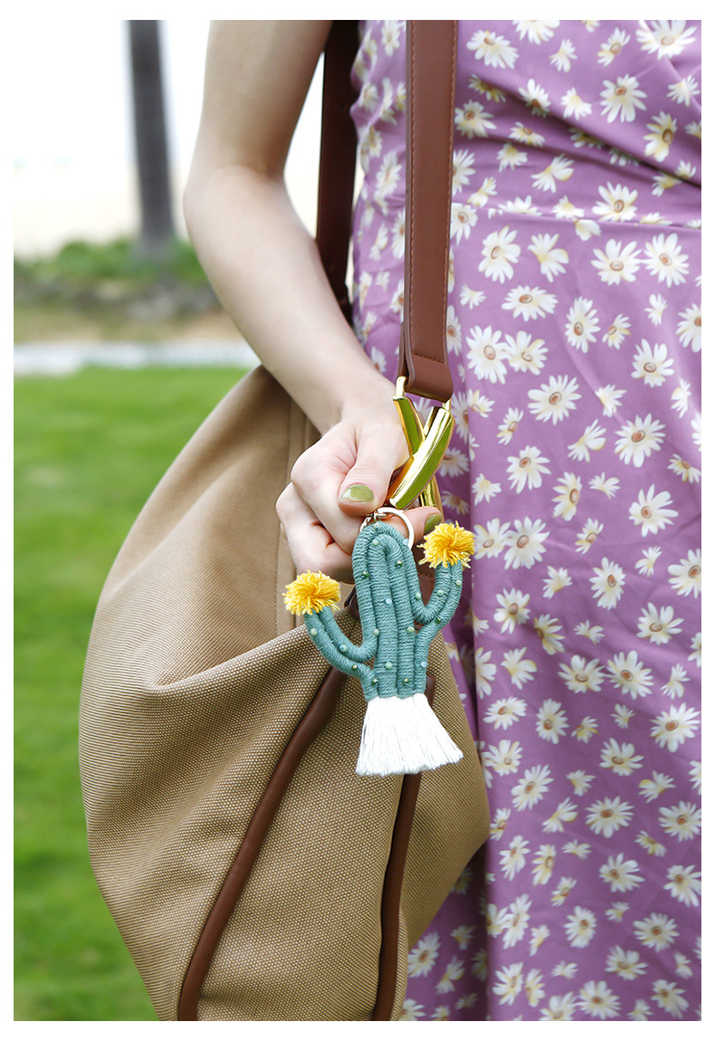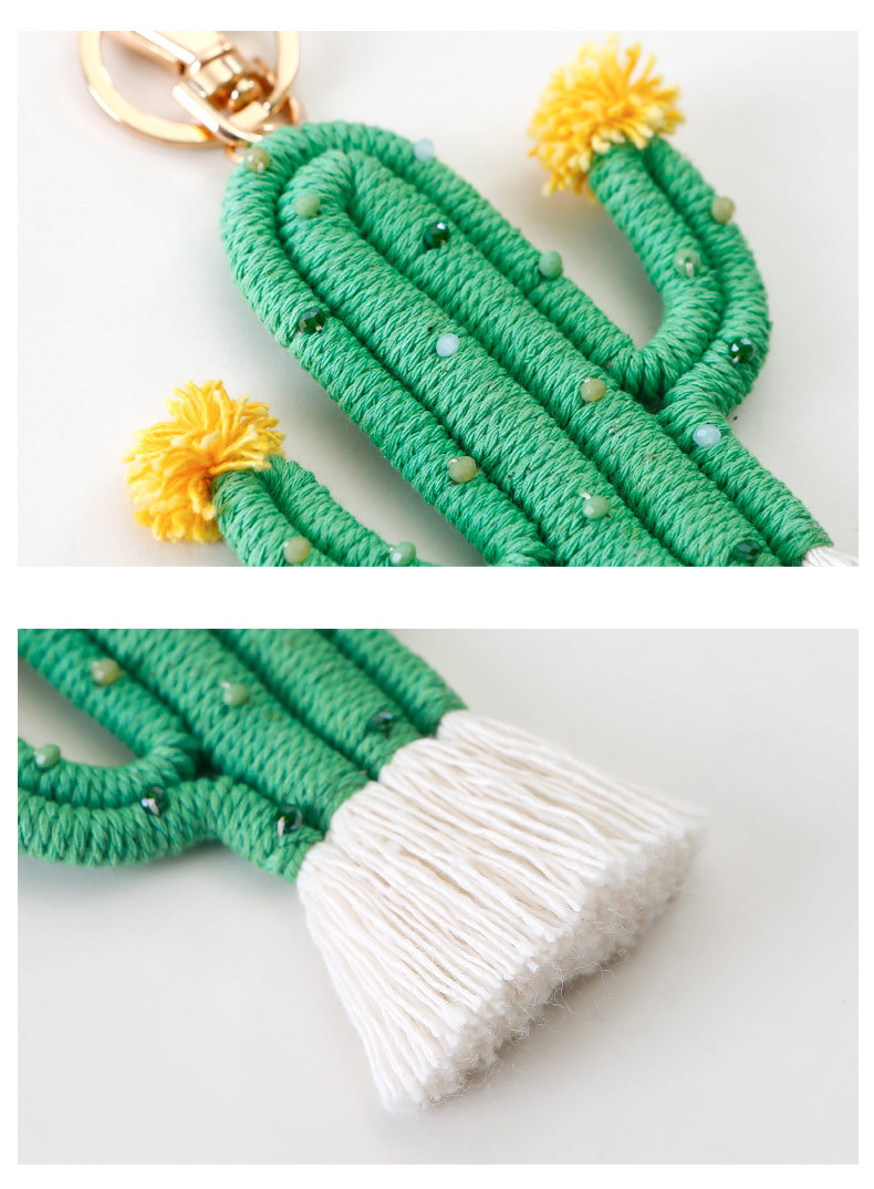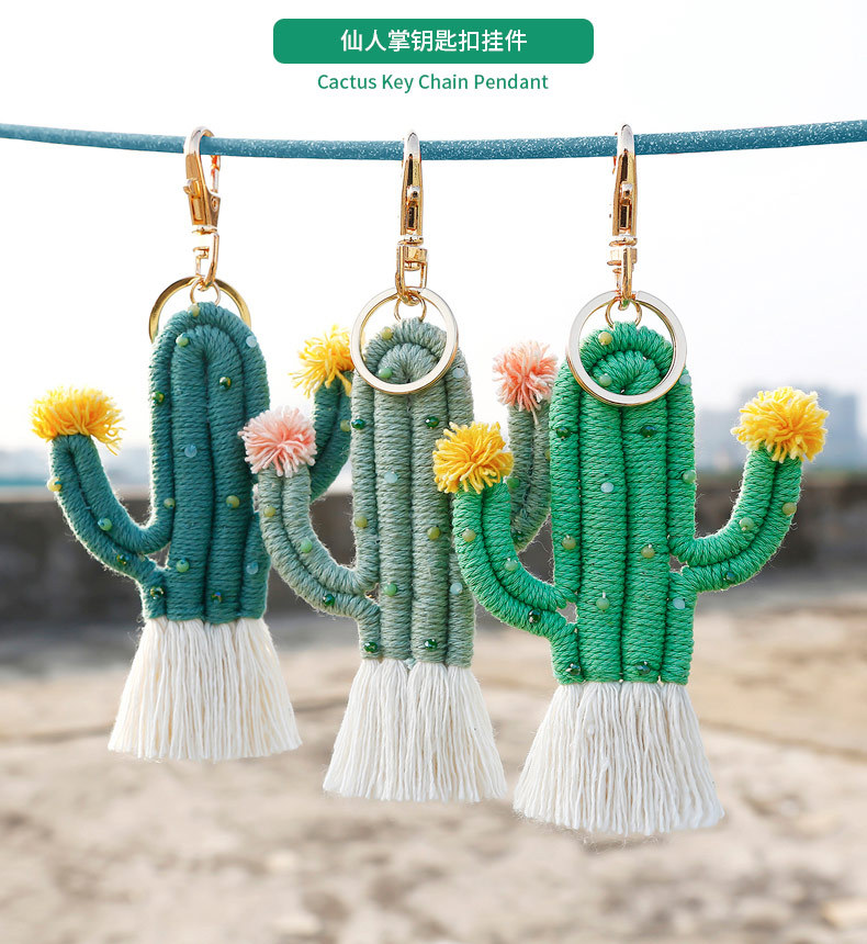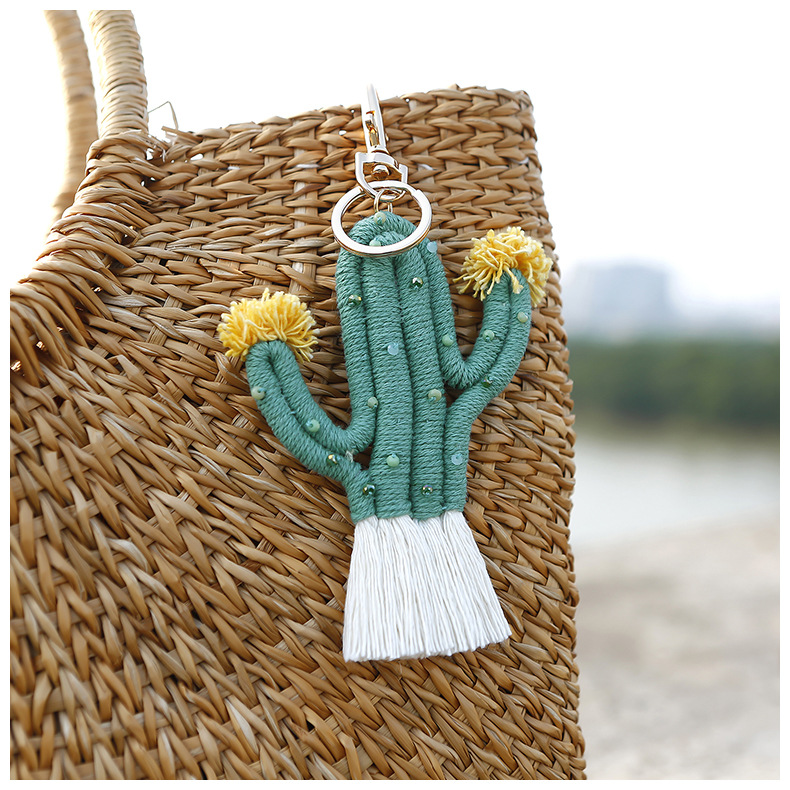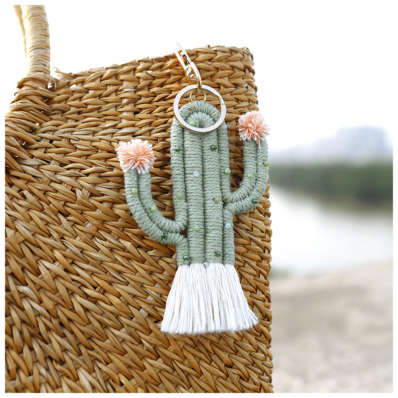 Verde planta cactus llavero bohemio arroz cuentas tejidas a mano hecho a mano de alto sentido bolsa colgante