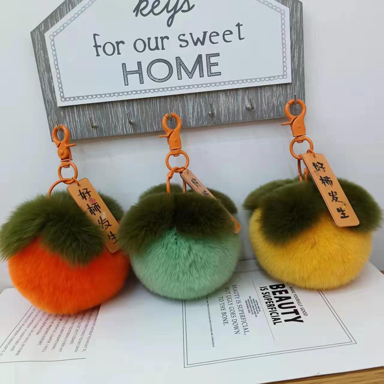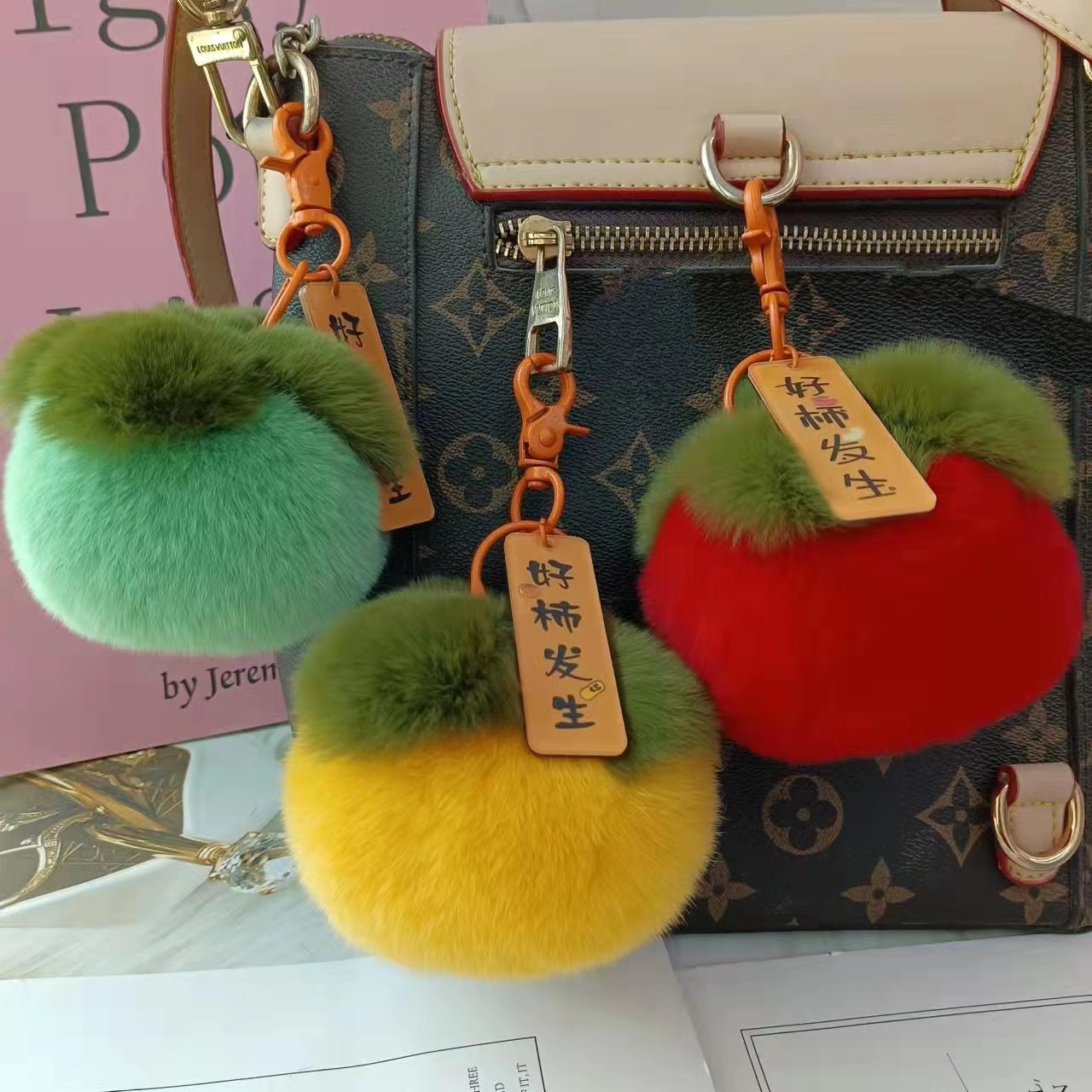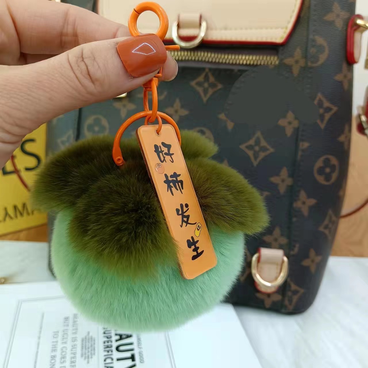 Imitación de piel de conejo Rex buena cosa sucedió Caqui colgante de peluche bola llavero bolsa de joyería teléfono móvil adornos hechos a mano de piel