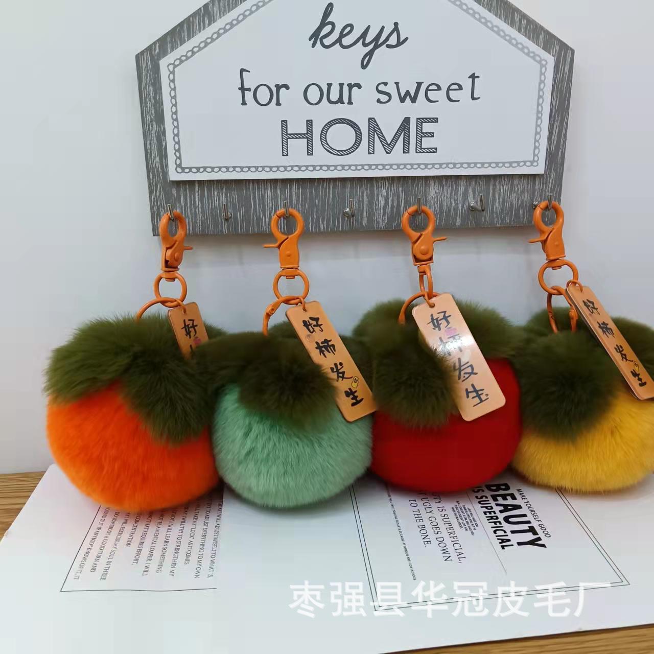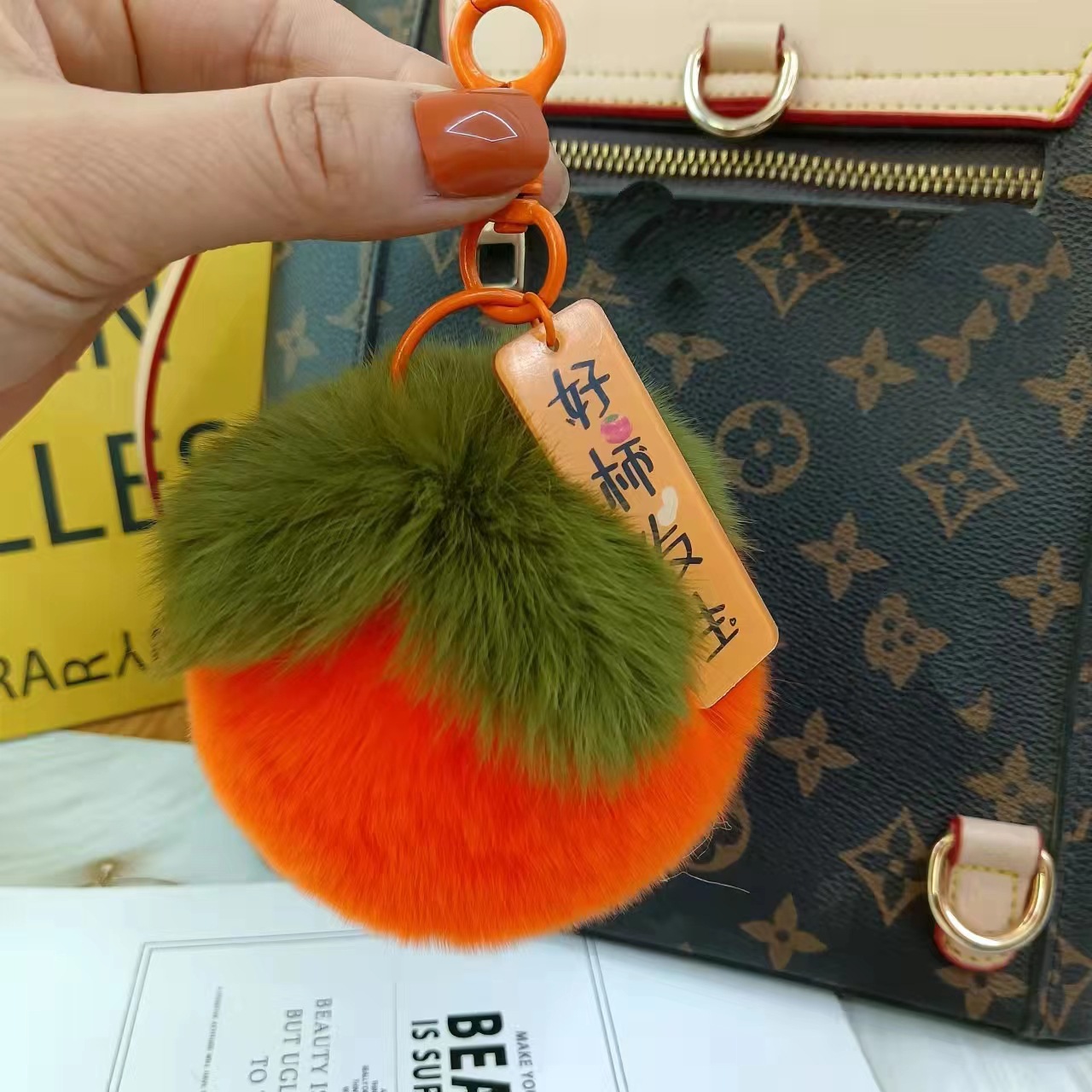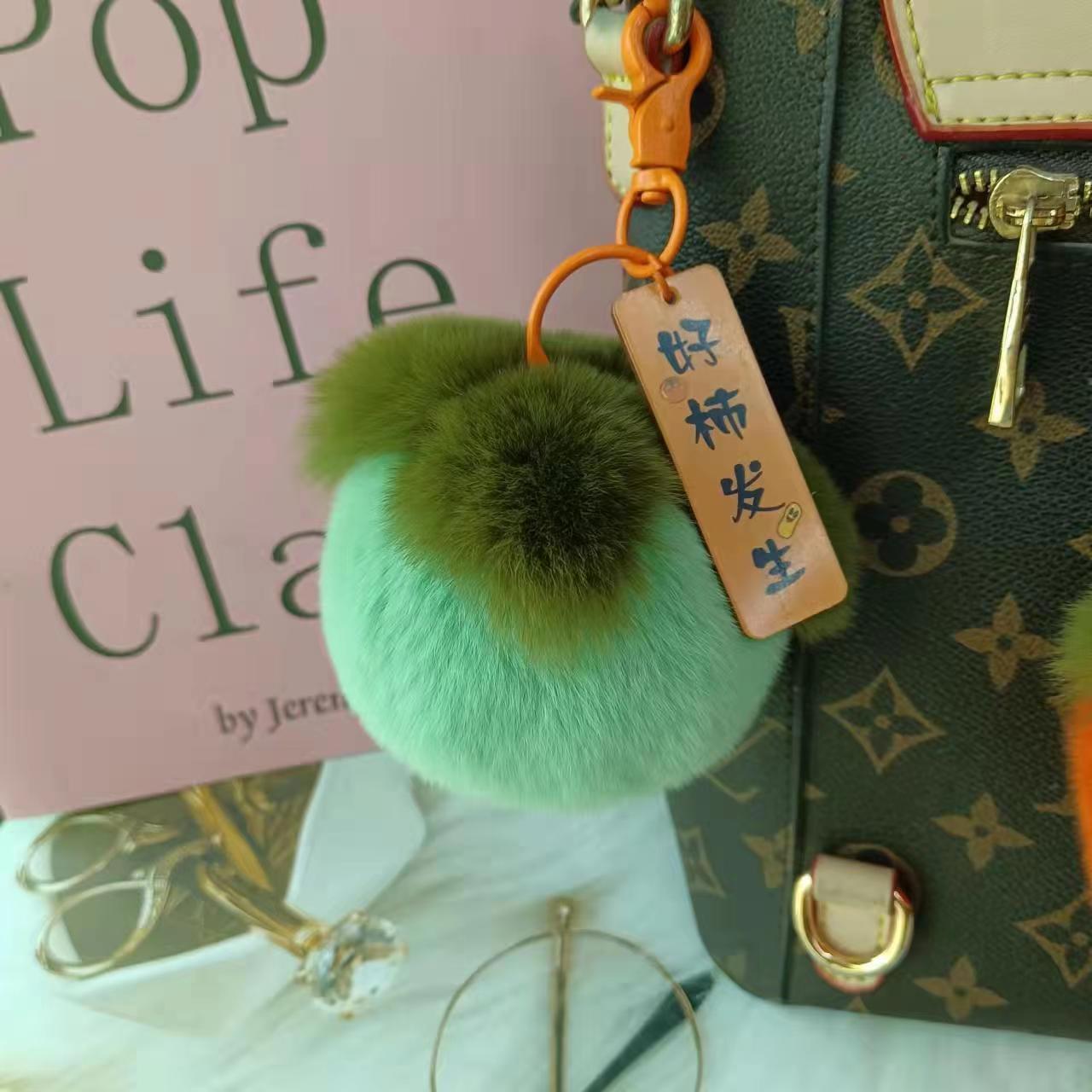 Imitación de piel de conejo Rex buena cosa sucedió Caqui colgante de peluche bola llavero bolsa de joyería teléfono móvil adornos hechos a mano de piel
