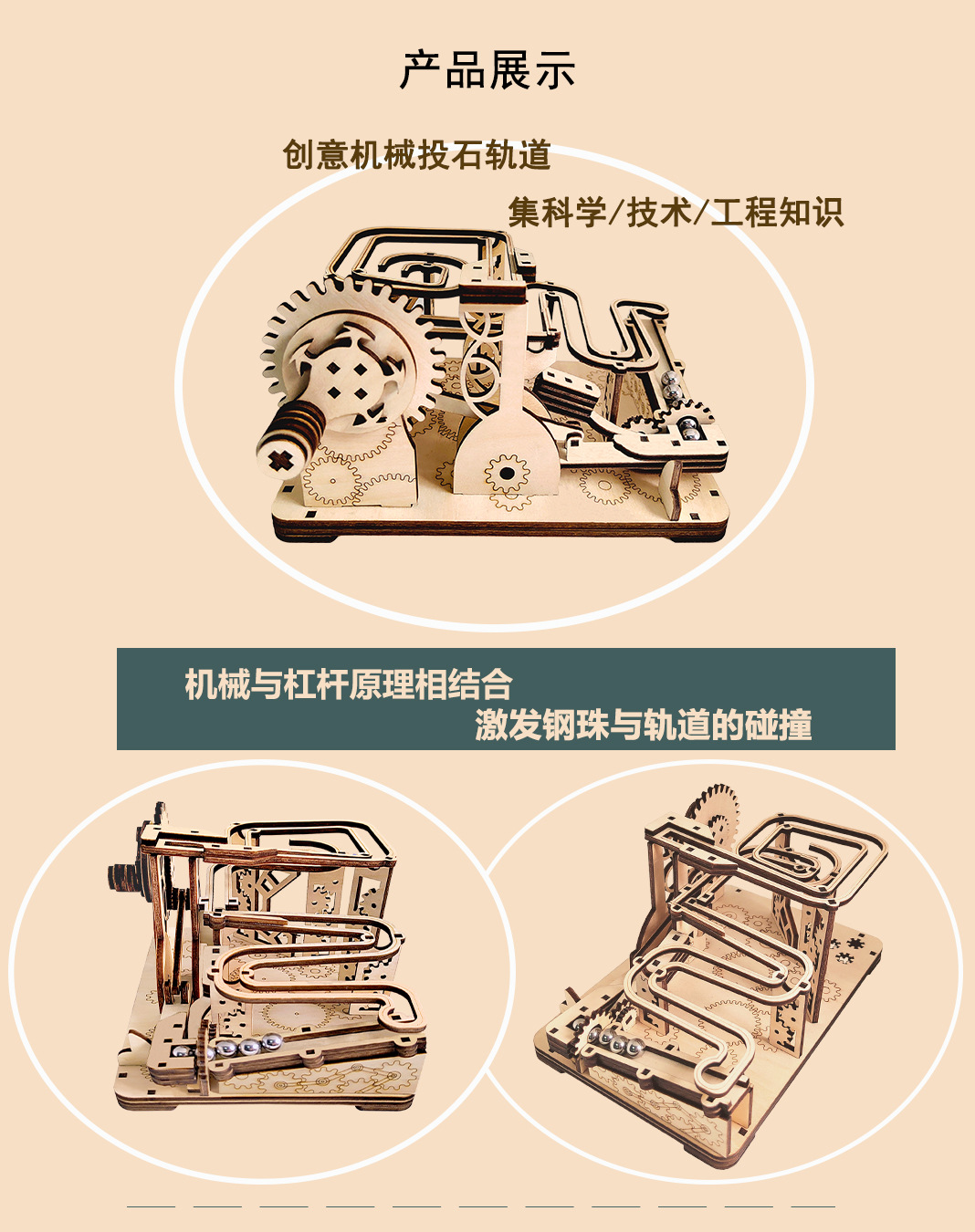 Rompecabezas tridimensional de madera ensamblado a mano DIY alimentador de piedra transmisión mecánica pista bola rompecabezas para niños juguete