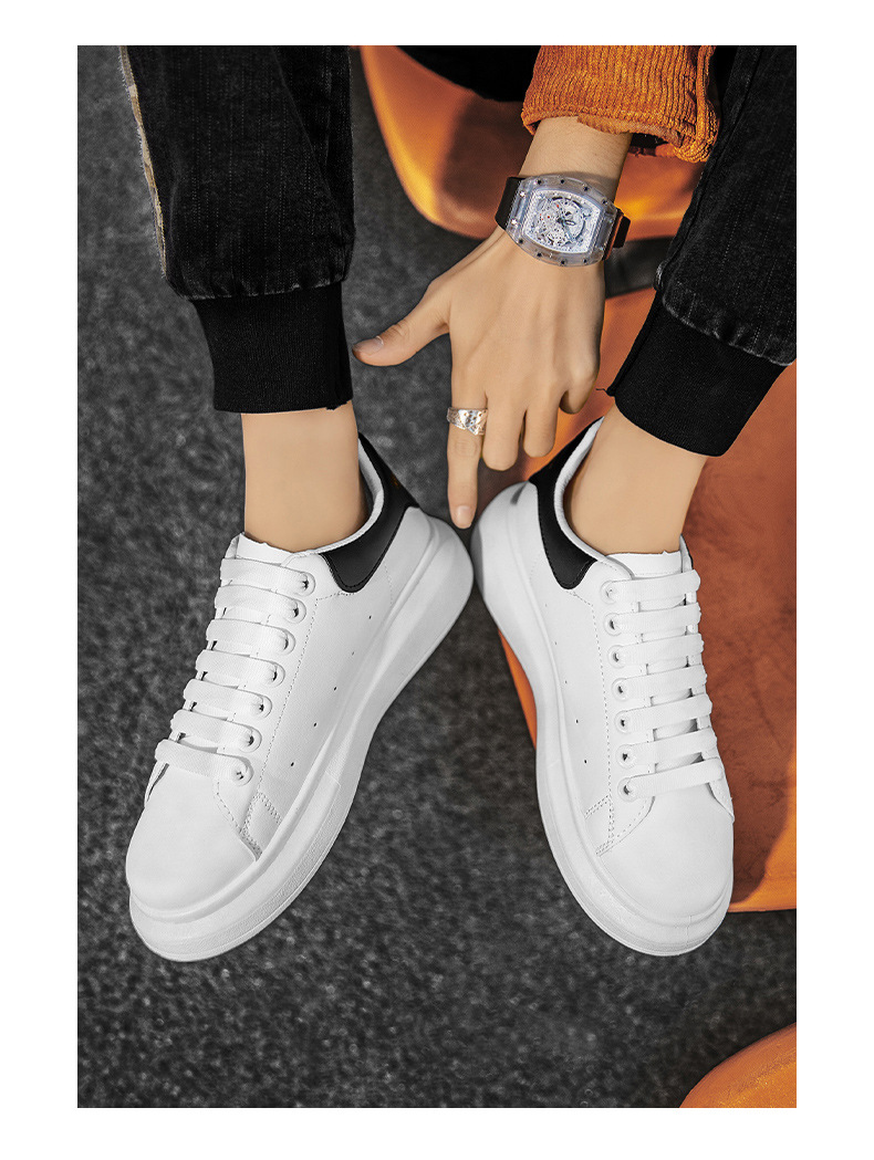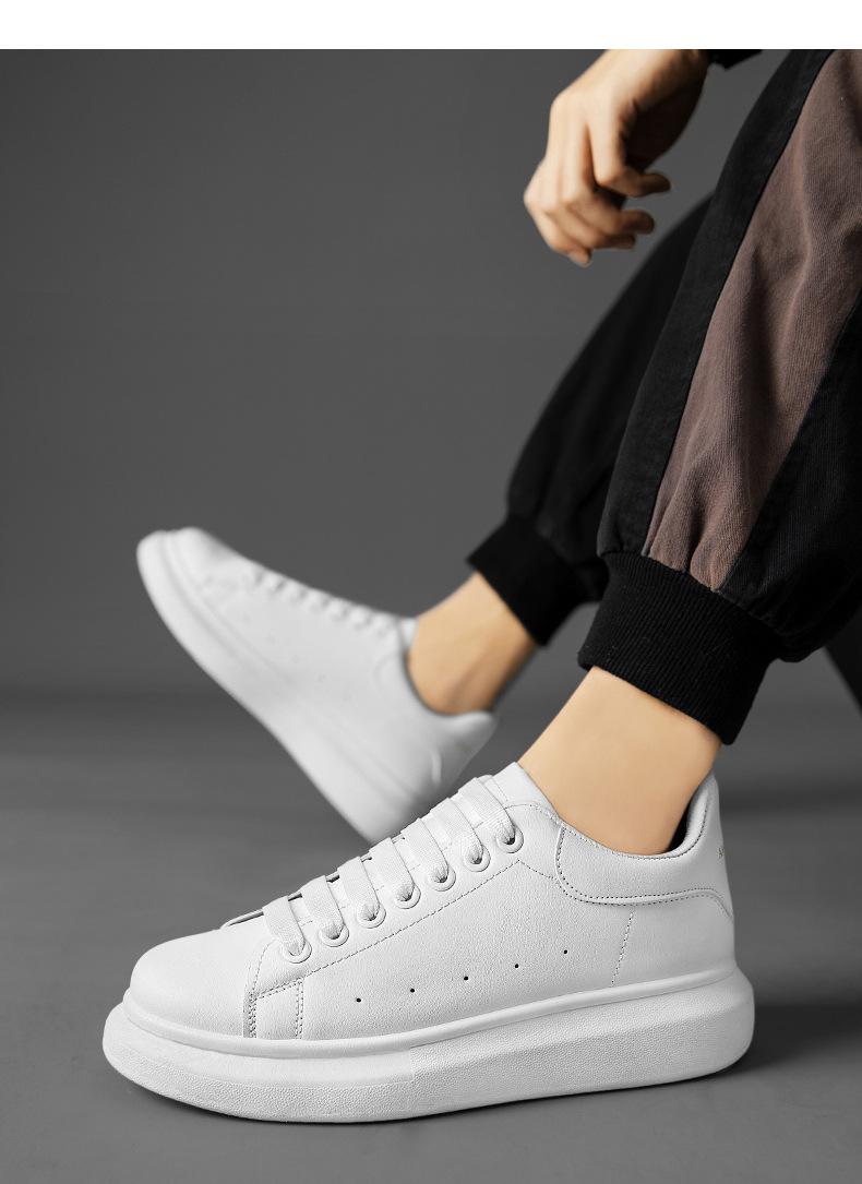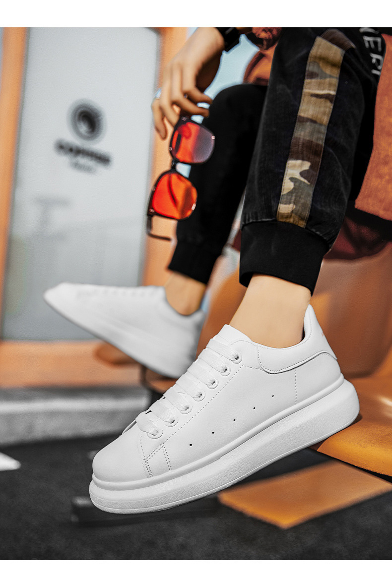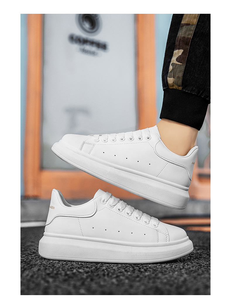 Zapatos blancos para parejas, zapatos para estudiantes masculinos, zapatos transpirables versátiles de moda de estilo coreano, zapatillas informales de suela gruesa con aumento de altura, zapatos de mujer McQueen